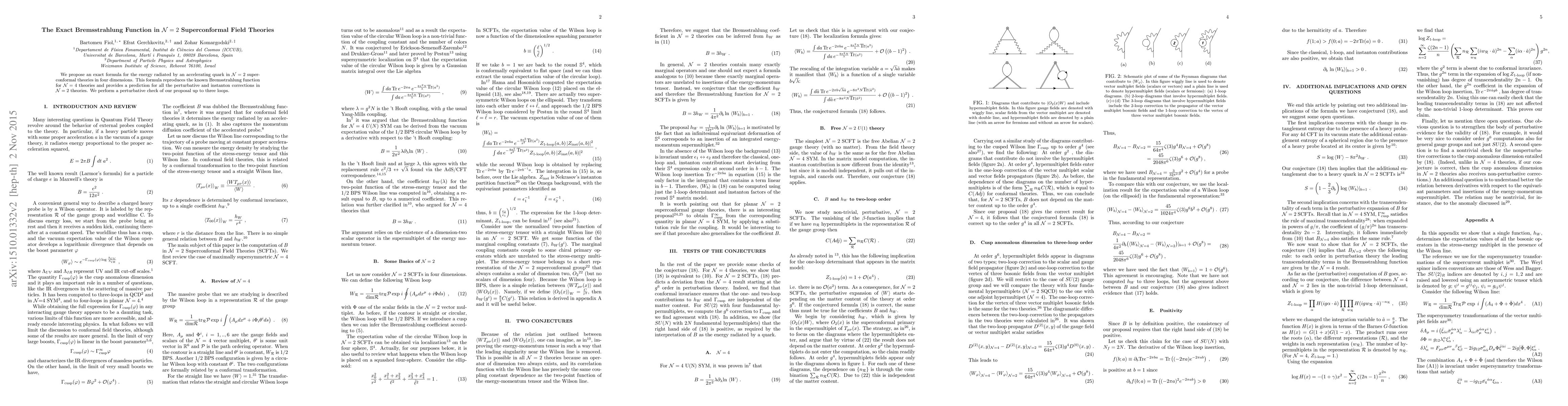 Summary: This paper presents an exact formula for the energy radiated by an accelerating quark in N=2 superconformal field theories, extending known results for N=4 theories and predicting perturbative and instanton corrections; perturbative checks up to three loops confirm its validity.