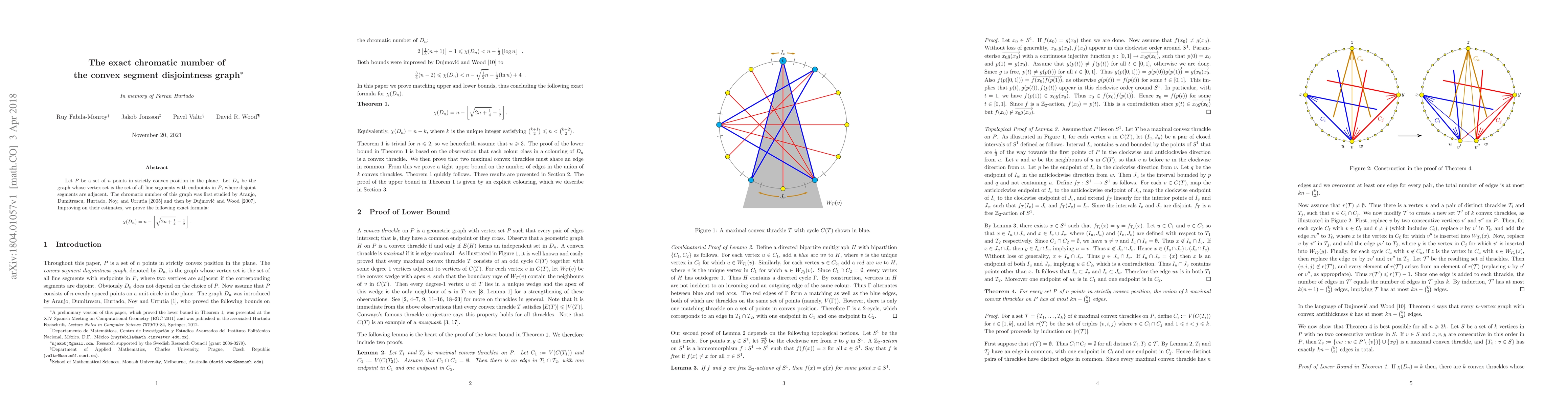 Researchers prove an exact formula for coloring a graph representing line segments between points in strictly convex position, finding that the chromatic number is n minus a specific floor function of a square root expression, improving on earlier estimates.