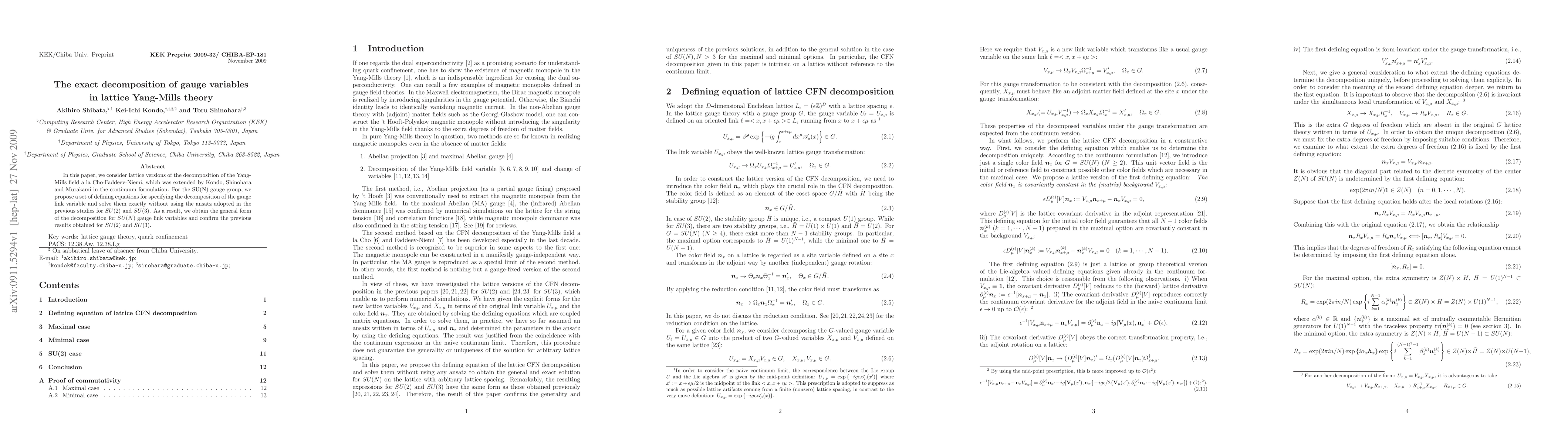 This paper presents an exact solution for the decomposition of gauge variables in lattice Yang-Mills theory for SU(N), extending previous works on SU(2) and SU(3). The research proposes defining equations and solves them without ansatz, confirming previous results and establishing a general form for SU(N) gauge link variables.