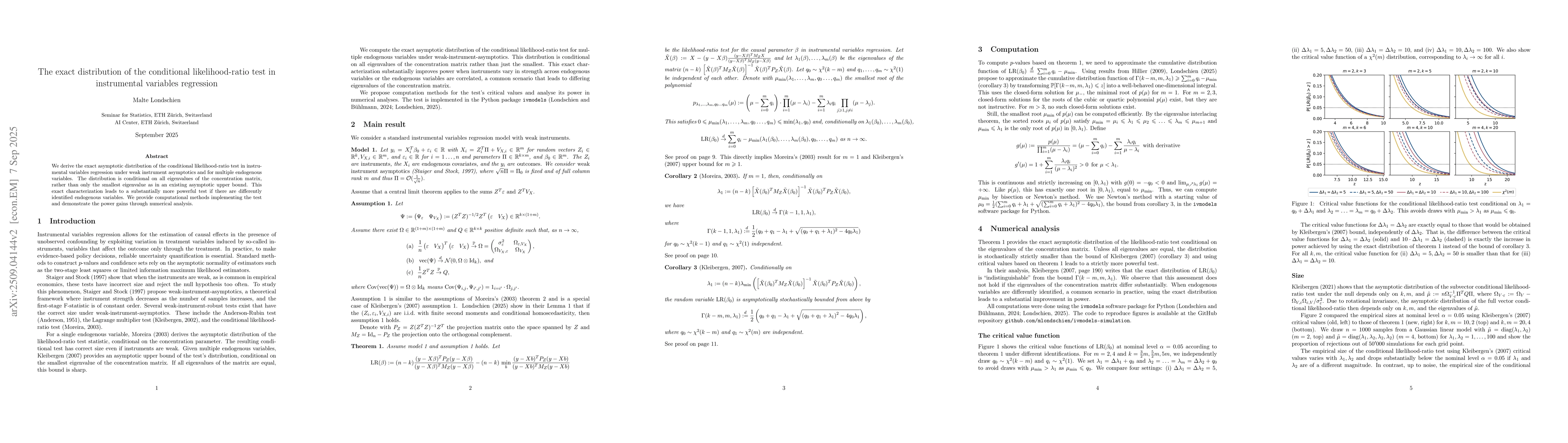 We derive the exact asymptotic distribution of the conditional likelihood-ratio test in instrumental variables regression under weak instrument asymptotics and for multiple endogenous variables. The distribution is conditional on all eigenvalues of the concentration matrix, rather than only the smallest eigenvalue as in an existing asymptotic upper bound. This exact characterization leads to a substantially more powerful test if there are differently identified endogenous variables. We provide computational methods implementing the test and demonstrate the power gains through numerical analysis.