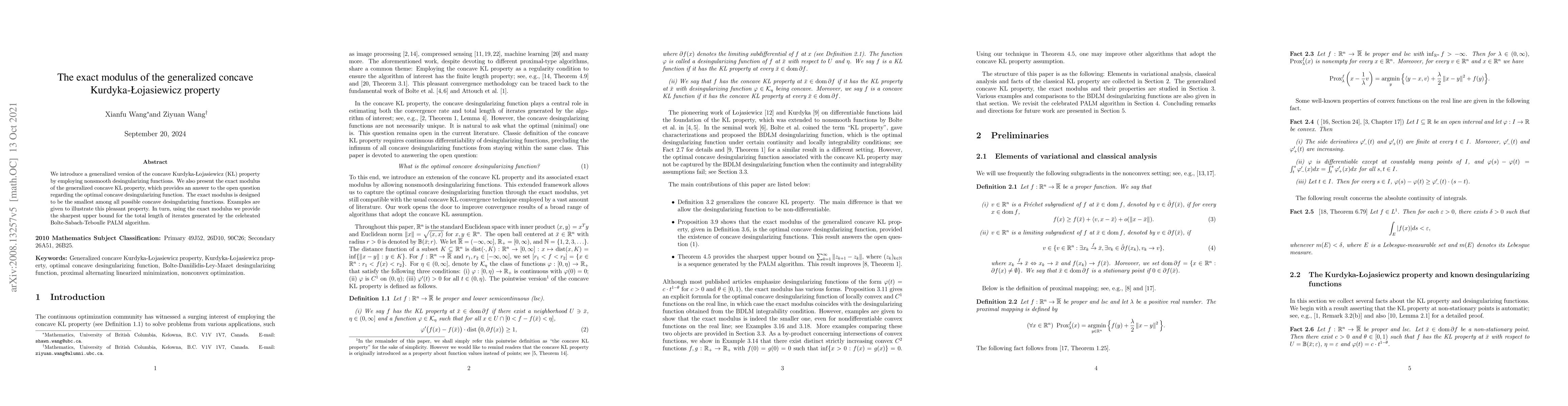 This paper introduces a generalized concave Kurdyka-{\L}ojasiewicz property using nonsmooth desingularizing functions and determines the exact modulus of this property, providing the smallest optimal concave desingularizing function. It also uses this modulus to derive the sharpest upper bound for the total length of iterates in the Bolte-Sabach-Teboulle PALM algorithm.
