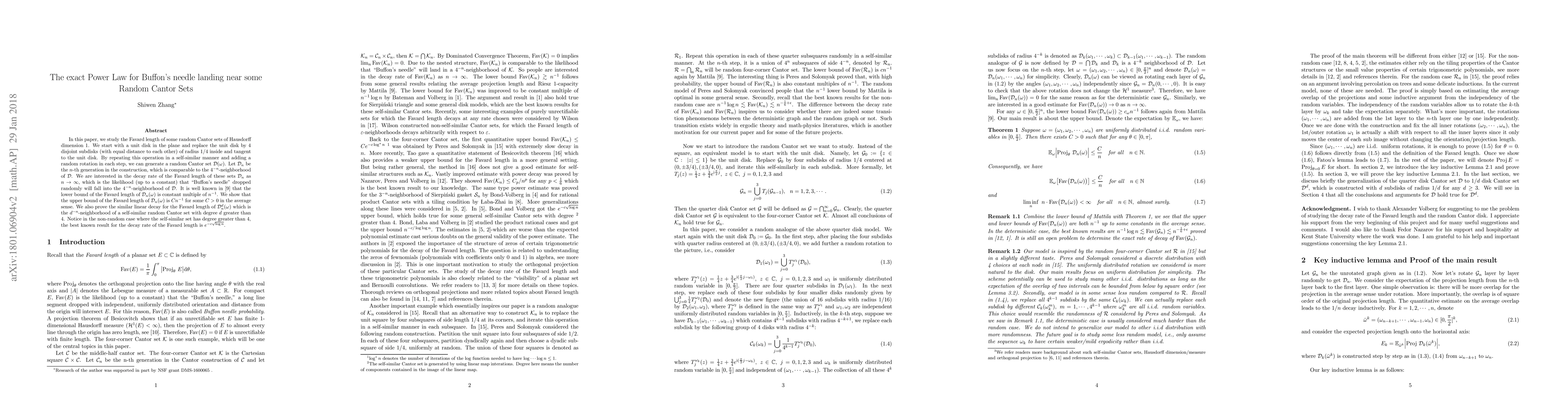 The paper studies the decay rate of Favard length for random Cantor sets generated through a self-similar process, finding an upper bound of $C n^{-1}$ for the average case.