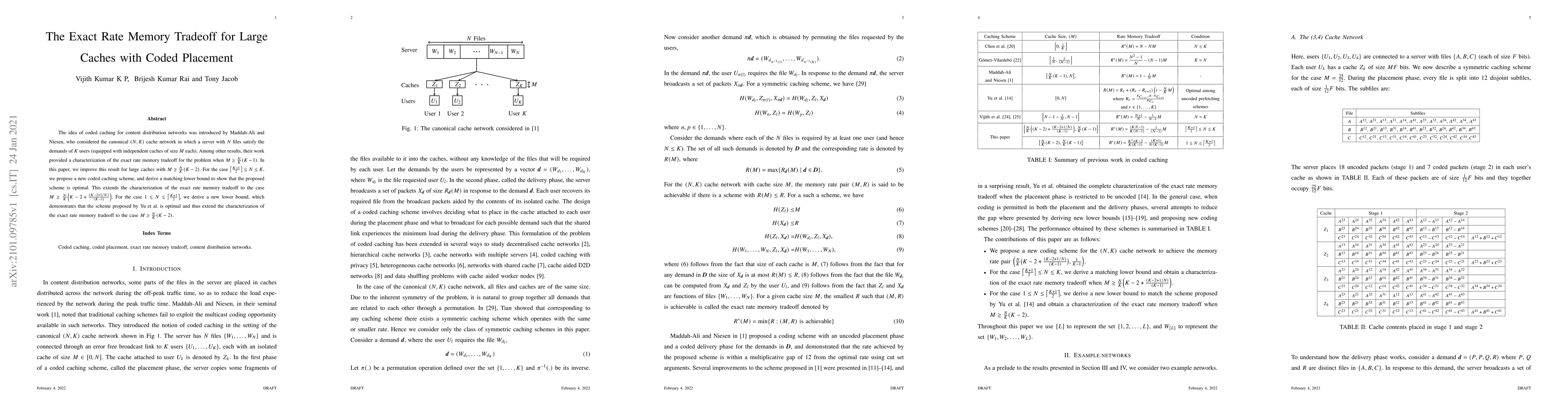 This paper improves the characterization of the exact rate memory tradeoff for large caches in content distribution networks, proposing a new coded caching scheme for specific cache sizes and deriving matching lower bounds to show optimality. It extends the tradeoff for caches with sizes $M\geq \frac{N}{K}(K-2)$ and $M\geq \frac{N}{K}\Big(K-2+\frac{(K-2+1/N)}{(K-1)}\Big)$.