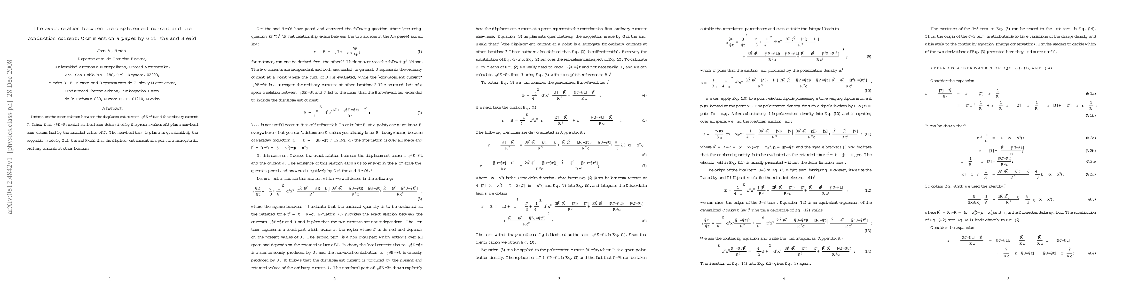 I introduce the exact relation between the displacement current $\epsilon_0 \partial \v{E}/\partial t$ and the ordinary current $\v{J}$. I show that $\epsilon_0 \partial \v{E}/\partial t$ contains a local term determined by the present values of $\v{J}$ plus a non-local term determined by the retarded values of $\v{J}$. The non-local term implements quantitatively the suggestion made by Griffiths and Heald that the displacement current at a point is a surrogate for ordinary currents at other locations.
