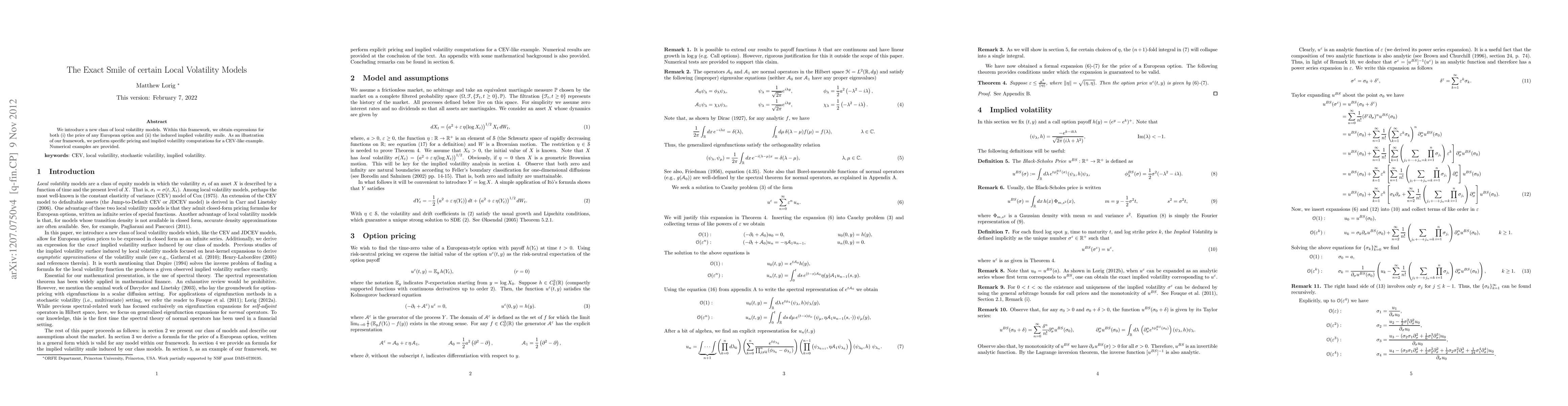 A new class of local volatility models is introduced, providing expressions for European option prices and implied volatility smiles. This framework enables precise pricing and analysis of options under various market conditions.