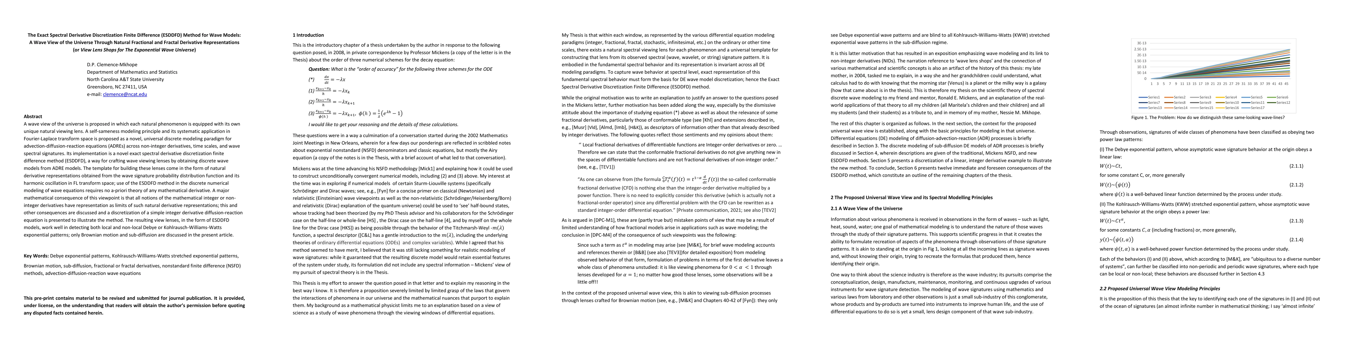 A wave view of the universe is proposed in which each natural phenomenon is equipped with its own unique natural viewing lens. A self-sameness modeling principle and its systematic application in Fourier-Laplace transform space is proposed as a novel, universal discrete modeling paradigm for advection-diffusion-reaction equations (ADREs) across non-integer derivatives, time scales, and wave spectral signatures. Its implementation is a novel exact spectral derivative discretization finite difference method (ESDDFD), a way for crafting wave viewing lenses by obtaining discrete wave models from ADRE models. The template for building these lenses come in the form of natural derivative representations obtained from the wave signature probability distribution function and its harmonic oscillation in FL transform space; use of the ESDDFD method in the discrete numerical modeling of wave equations requires no a-priori theory of any mathematical derivative. A major mathematical consequence of this viewpoint is that all notions of the mathematical integer or non-integer derivatives have representation as limits of such natural derivative representations; this and other consequences are discussed and a discretization of a simple integer derivative diffusion-reaction equation is presented to illustrate the method. The resulting view lenses, in the form of ESDDFD models, work well in detecting both local and non-local Debye or Kohlrausch-Williams-Watts exponential patterns; only Brownian motion and sub-diffusion are discussed in the present article.