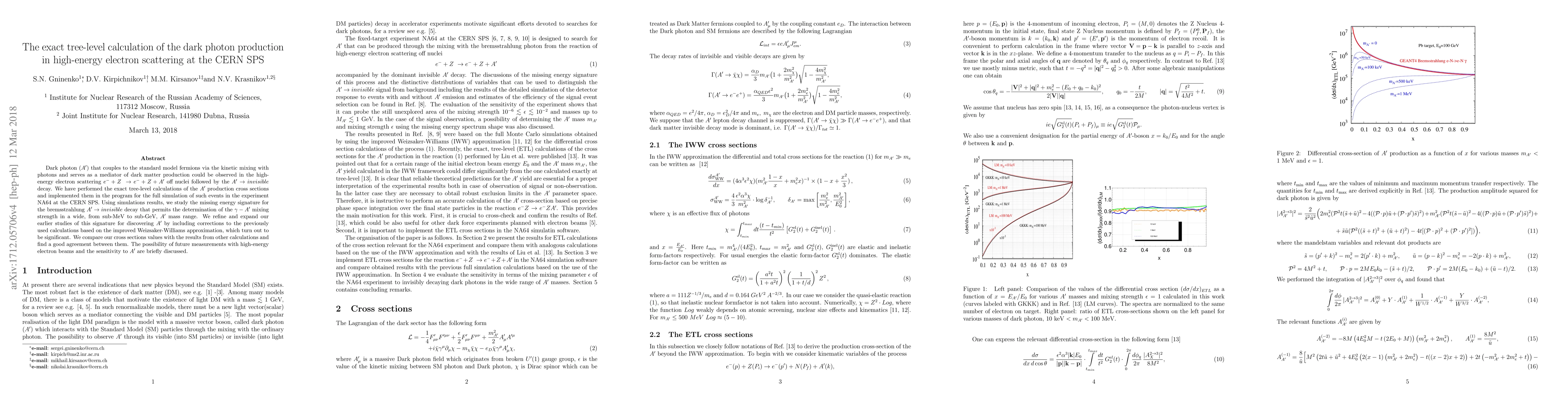 This paper presents exact tree-level calculations of dark photon ($A'$) production in high-energy electron scattering at CERN SPS, refining previous methods with improved approximations. The study aims to determine the $A'$ mass range and the $\gamma-A'$ mixing strength through simulations and the missing energy signature.