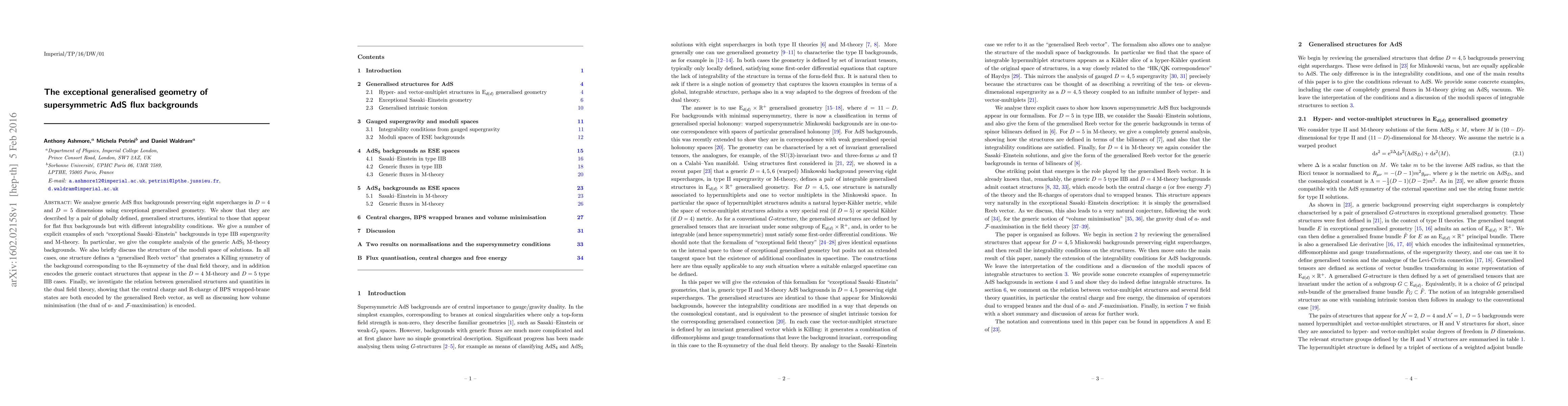 This paper analyses $D=4$ and $D=5$ AdS flux backgrounds preserving eight supercharges using exceptional generalised geometry, revealing they are described by globally defined generalised structures with unique integrability conditions. It provides explicit examples of "exceptional Sasaki-Einstein" backgrounds and discusses the moduli space structure, showing how generalised structures relate to dual field theory quantities like central charge and R-charge.
