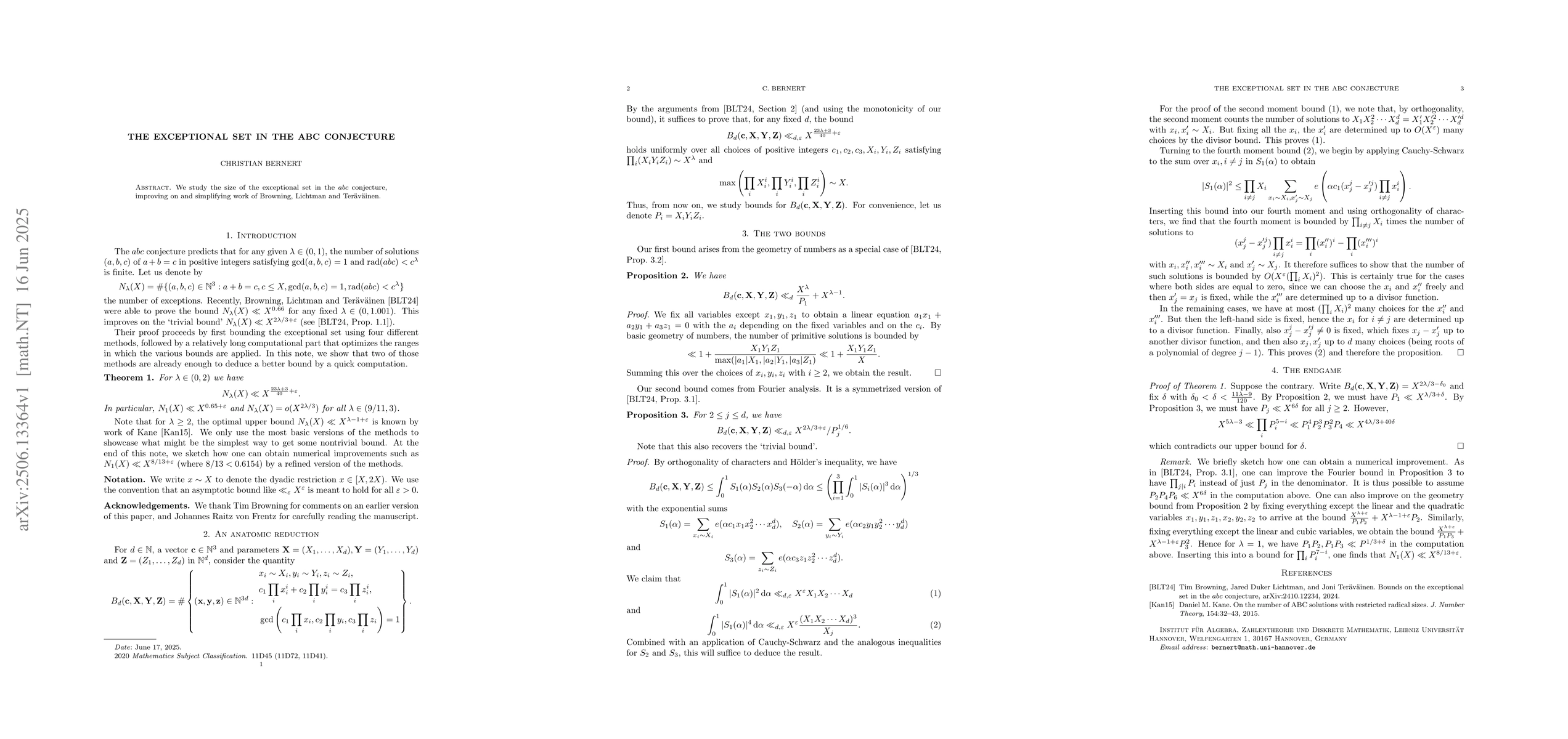 We study the size of the exceptional set in the $abc$ conjecture, improving on and simplifying work of Browning, Lichtman and Ter\"av\"ainen.