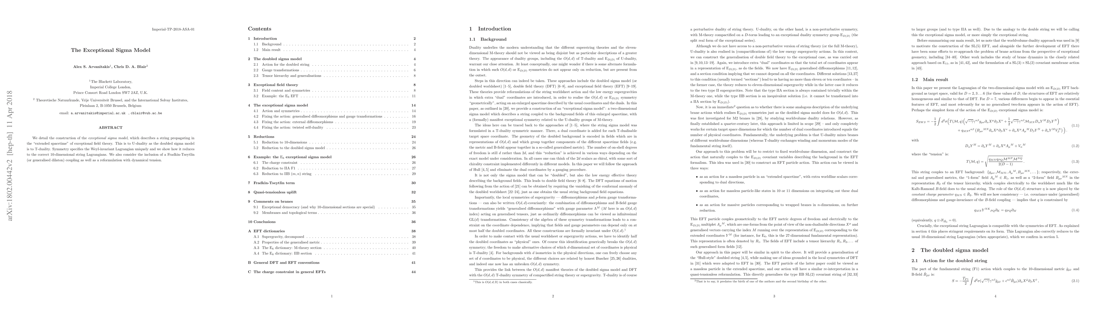 This paper constructs the exceptional sigma model for a string in exceptional field theory, demonstrating its U-duality equivalence and unique Lagrangian derivation through symmetry. It also explores the inclusion of Fradkin-Tseytlin coupling and a reformulation with dynamical tension.