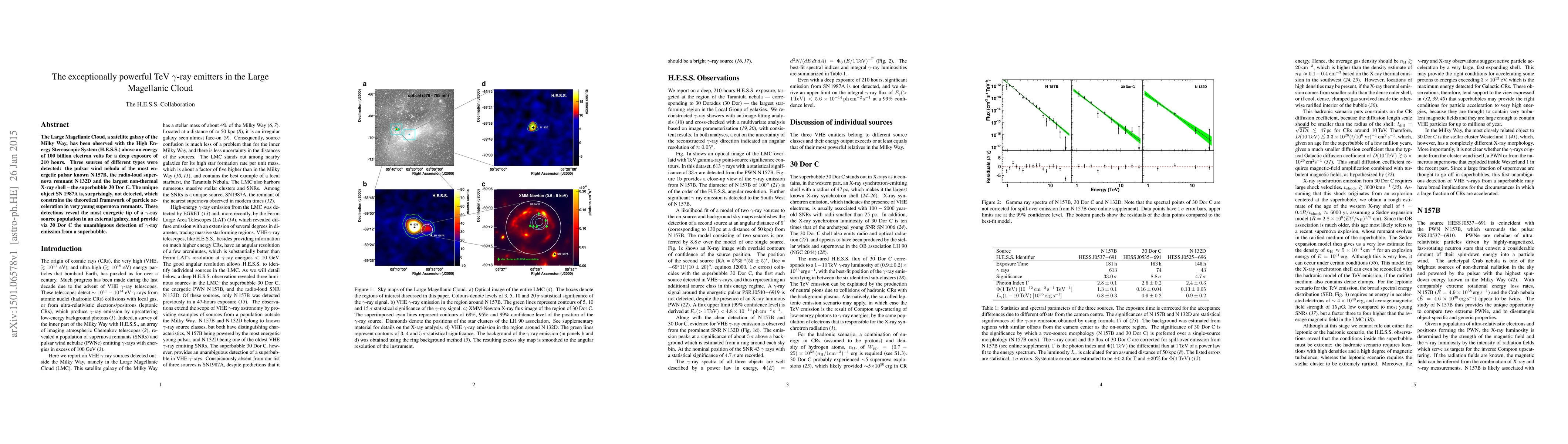 The H.E.S.S. observations of the Large Magellanic Cloud identified three exceptionally powerful TeV gamma-ray sources: the pulsar wind nebula around the most energetic pulsar N 157B, the radio-loud supernova remnant N 132D, and the gamma-ray emission from the superbubble 30 Dor C. The non-detection of SN 1987A constrains theories on particle acceleration in young supernova remnants.