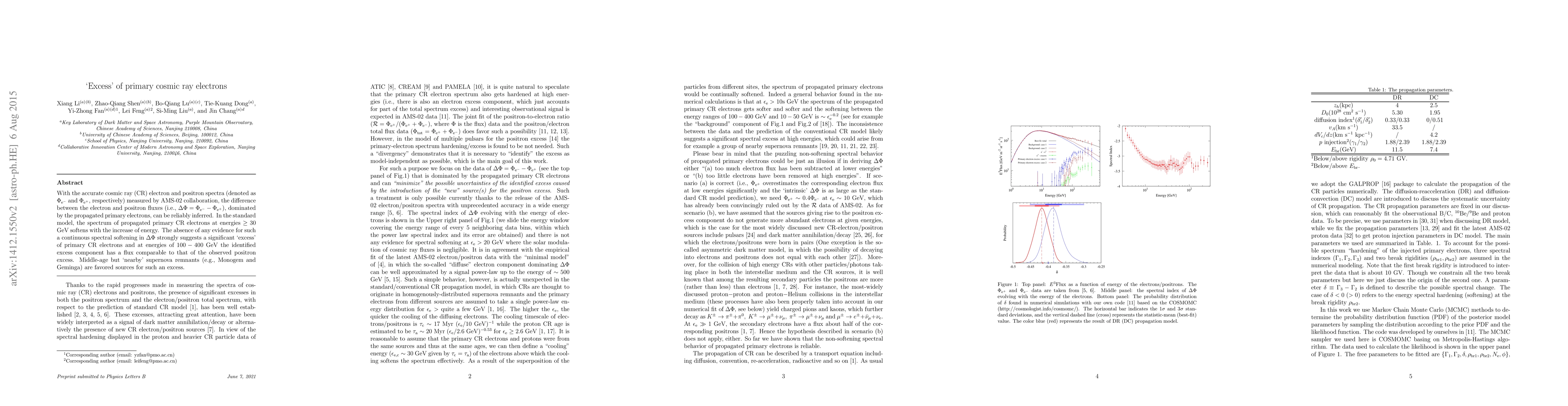 Researchers found a significant excess of primary cosmic ray electrons, especially at high energies, which challenges the standard model's predictions. The excess is comparable to that of observed positron excesses and may be related to nearby supernova remnants.