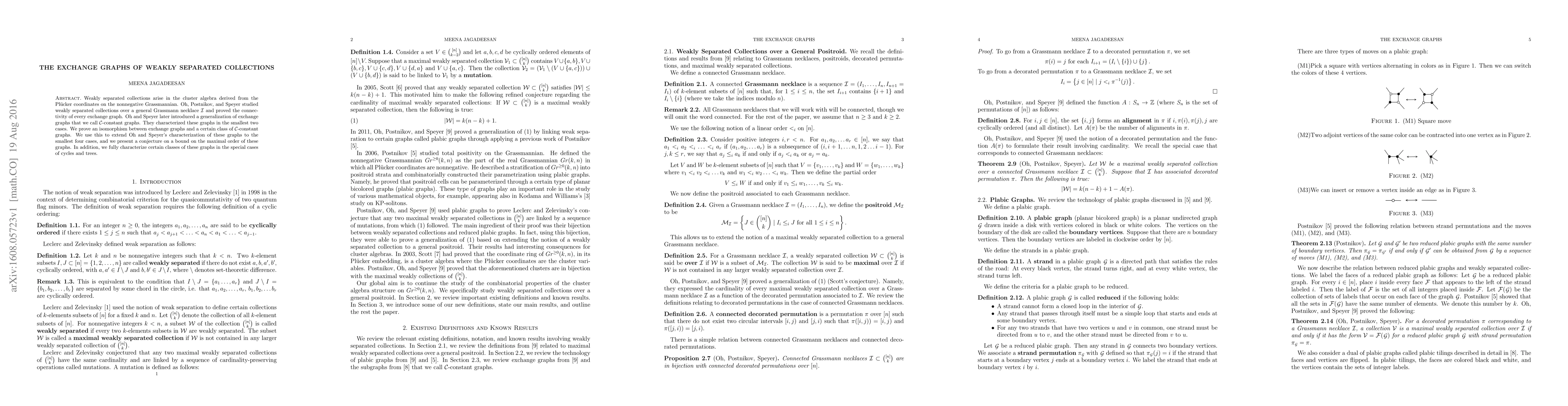 Weakly separated collections arise in the cluster algebra derived from the Pl\"ucker coordinates on the nonnegative Grassmannian. Oh, Postnikov, and Speyer studied weakly separated collections over a general Grassmann necklace $\mathcal{I}$ and proved the connectivity of every exchange graph. Oh and Speyer later introduced a generalization of exchange graphs that we call $\mathcal{C}$-constant graphs. They characterized these graphs in the smallest two cases. We prove an isomorphism between exchange graphs and a certain class of $\mathcal{C}$-constant graphs. We use this to extend Oh and Speyer's characterization of these graphs to the smallest four cases, and we present a conjecture on a bound on the maximal order of these graphs. In addition, we fully characterize certain classes of these graphs in the special cases of cycles and trees.