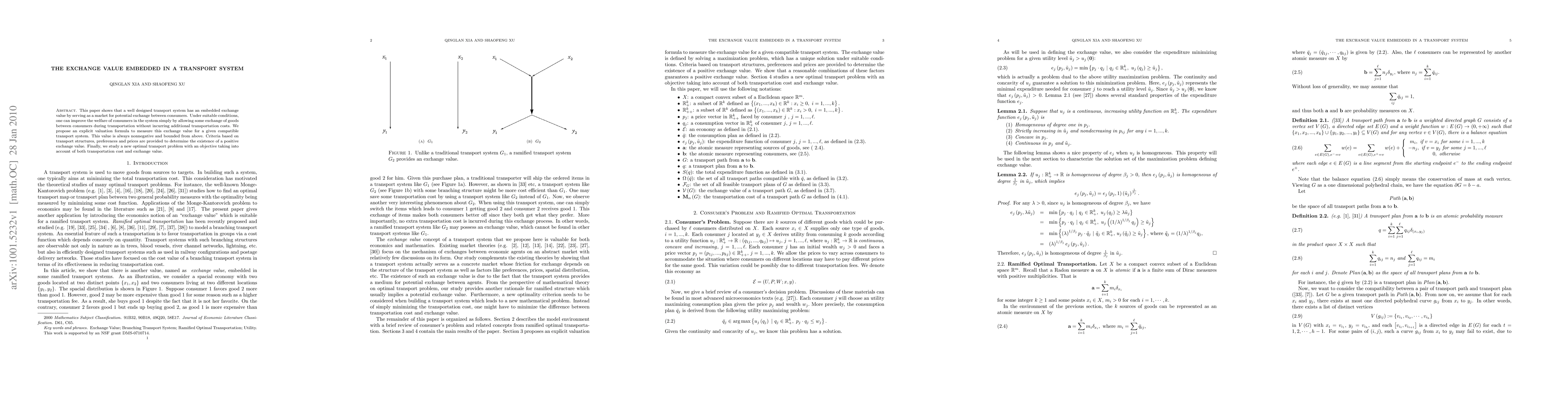 The paper proposes an explicit valuation formula to measure the exchange value embedded in a transport system, considering transport structures, consumer preferences, and prices.