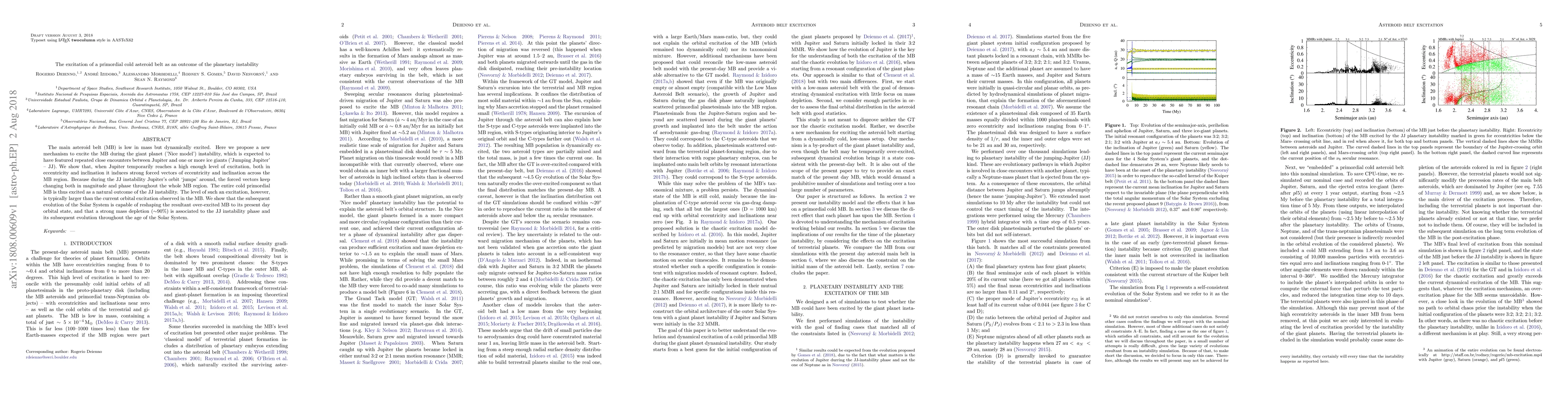 This paper proposes a new mechanism for the excitation of the primordial cold asteroid belt during the giant planet instability, specifically through repeated close encounters between Jupiter and ice giants. The resulting orbital excitation is later reshaped by the Solar System's evolution, leading to a significant mass depletion of the belt.