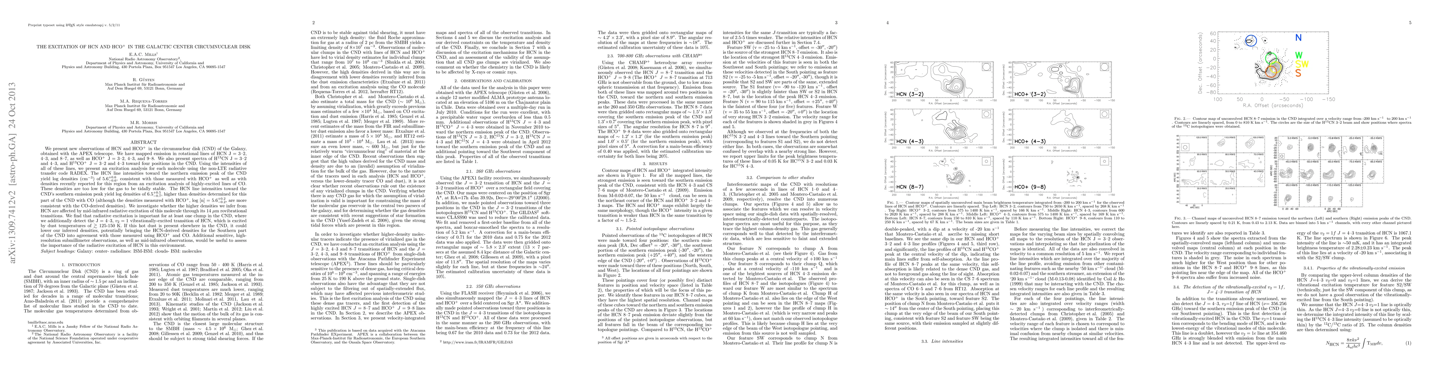 This paper presents new observations of HCN and HCO+ in the Galactic Center's circumnuclear disk using the APEX telescope, revealing varying gas densities and the potential for mid-infrared radiative excitation affecting HCN line intensities, especially in the southern emission peak.