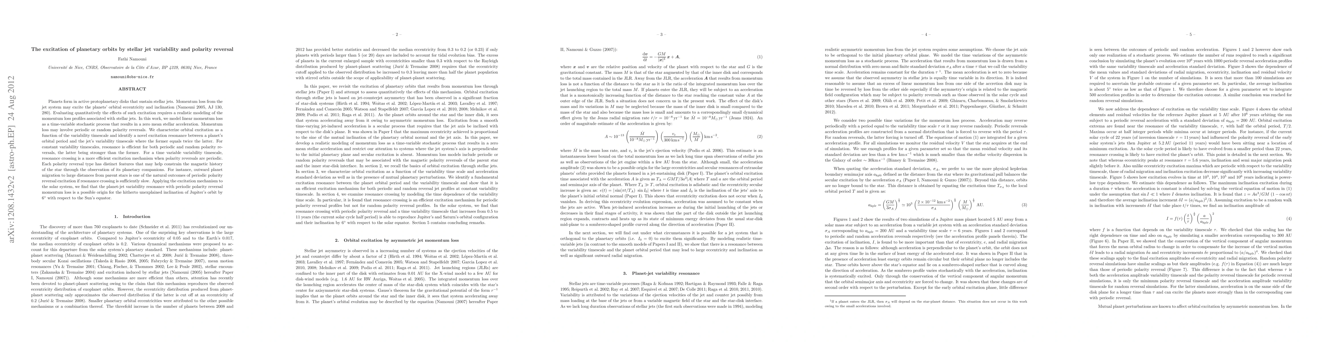 Planets form in active protoplanetary disks that sustain stellar jets. Momentum loss from the jet system may excite the planets' orbital eccentricity and inclination (Namouni 2005, AJ 130, 280). Evaluating quantitatively the effects of such excitation requires a realistic modeling of the momentum loss profiles associated with stellar jets. In this work, we model linear momentum loss as a time-variable stochastic process that results in a zero mean stellar acceleration. Momentum loss may involve periodic or random polarity reversals. We characterize orbital excitation as a function of the variability timescale and identify a novel excitation resonance between a planet's orbital period and the jet's variability timescale where the former equals twice the latter. For constant variability timescales, resonance is efficient for both periodic and random polarity reversals, the latter being stronger than the former. For a time variable variability timescale, resonance crossing is a more efficient excitation mechanism when polarity reversals are periodic. Each polarity reversal type has distinct features that may help constrain the magnetic history of the star through the observation of its planetary companions. For instance, outward planet migration to large distances from parent stars is one of the natural outcomes of periodic polarity reversal excitation if resonance crossing is sufficiently slow. Applying the excitation mechanism to the solar system, we find that the planet-jet variability resonance with periodic polarity reversal momentum loss is a possible origin for the hitherto unexplained inclination of Jupiter's orbit by 6 deg. with respect to the Sun's equator.