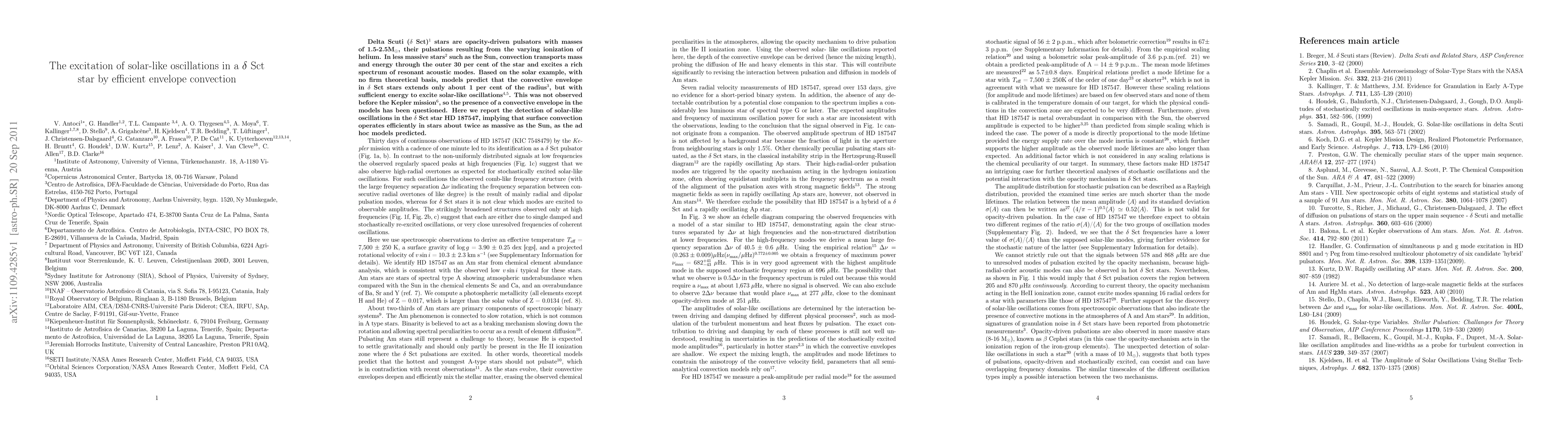 This paper reports the detection of solar-like oscillations in the delta Scuti star HD 187547, confirming that efficient envelope convection can excite these oscillations in stars about twice the Sun's mass, as predicted by ad hoc models. This finding supports the presence of convective envelopes in delta Scuti stars, previously questioned due to lack of observational evidence.