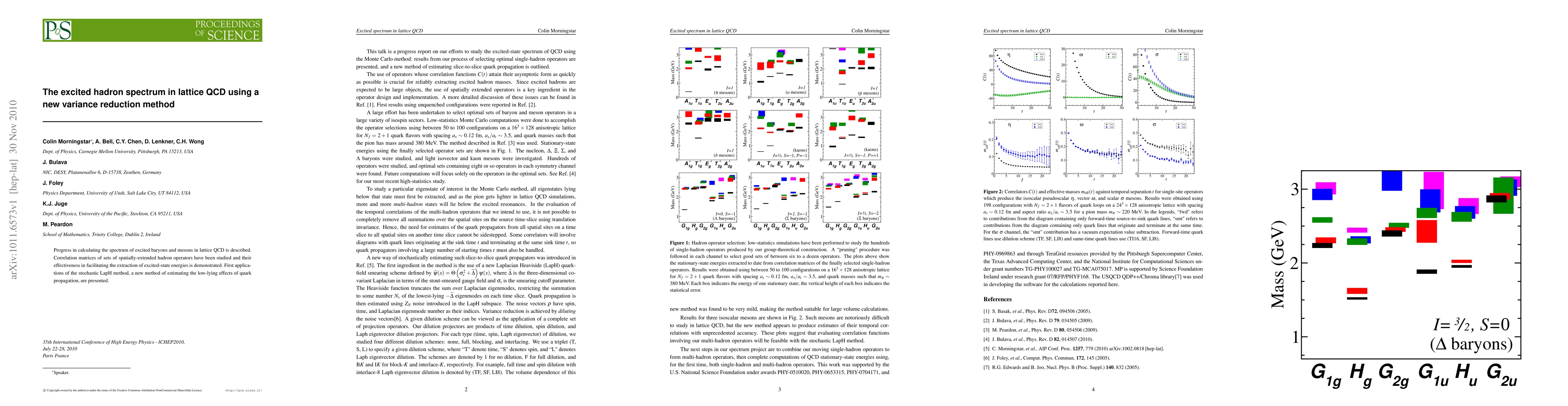 This paper presents advancements in calculating the spectrum of excited hadrons in lattice QCD, utilizing new correlation matrices for hadron operators and introducing the stochastic LapH method for estimating low-lying quark propagation effects to improve the accuracy of excited-state energy extraction.