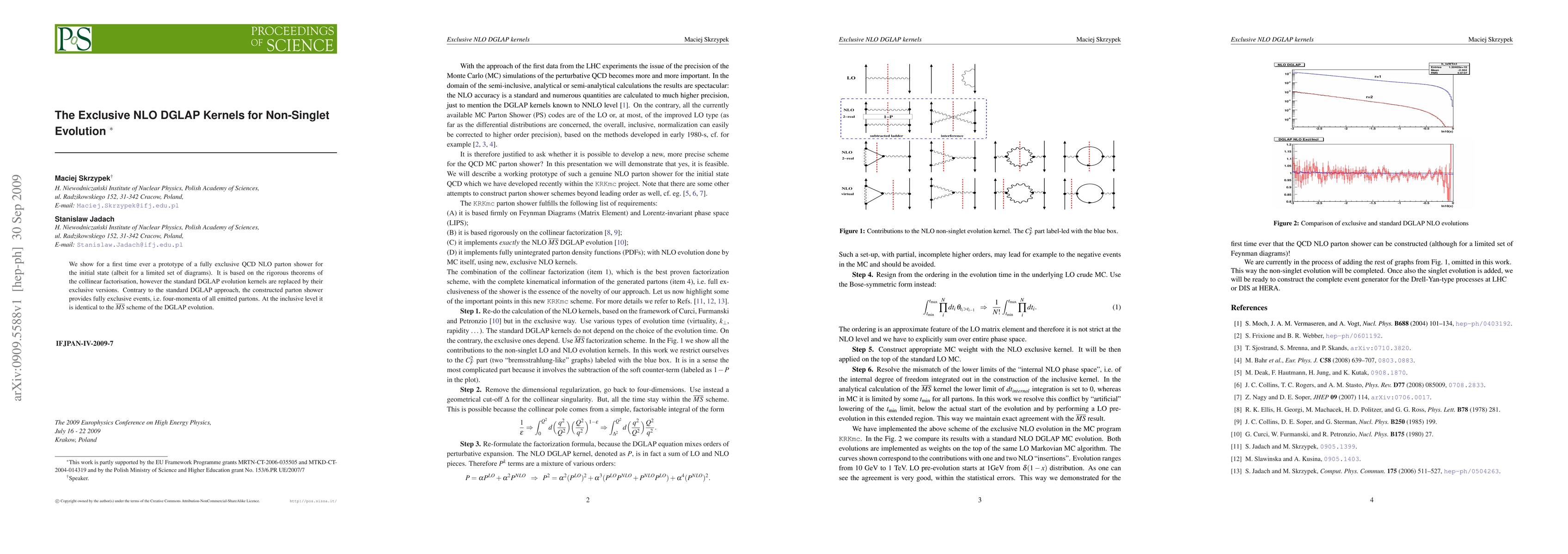 We show for a first time ever a prototype of a fully exclusive QCD NLO parton shower for the initial state (albeit for a limited set of diagrams). It is based on the rigorous theorems of the collinear factorisation, however the standard DGLAP evolution kernels are replaced by their exclusive versions. Contrary to the standard DGLAP approach, the constructed parton shower provides fully exclusive events, i.e. four-momenta of all emitted partons. At the inclusive level it is identical to the MS-bar scheme of the DGLAP evolution.