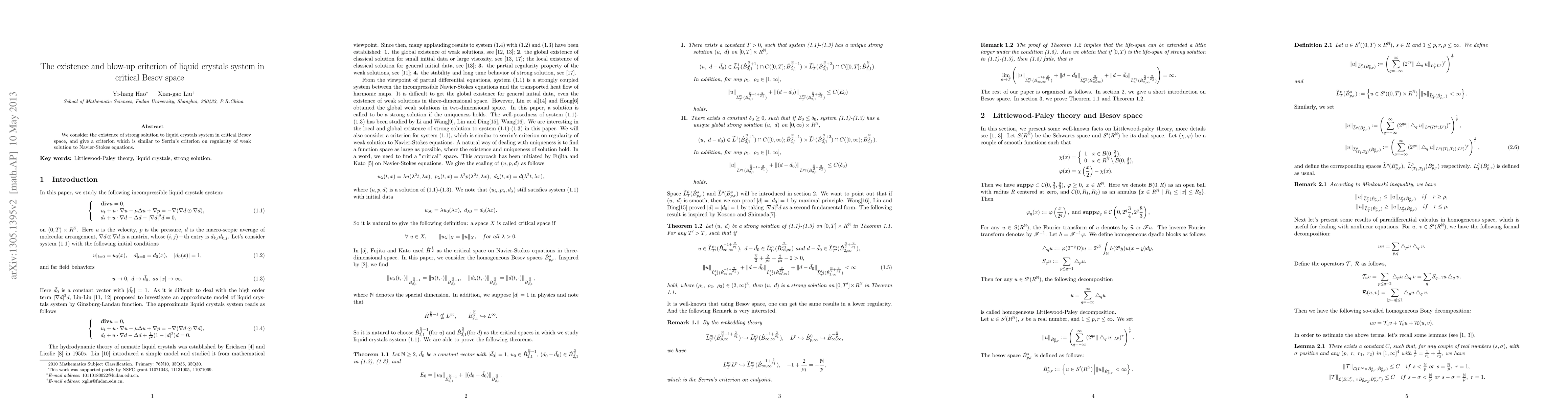 This paper explores the existence of strong solutions to a liquid crystals system in critical Besov space, establishing a blow-up criterion similar to Serrin's for weak Navier-Stokes solutions.