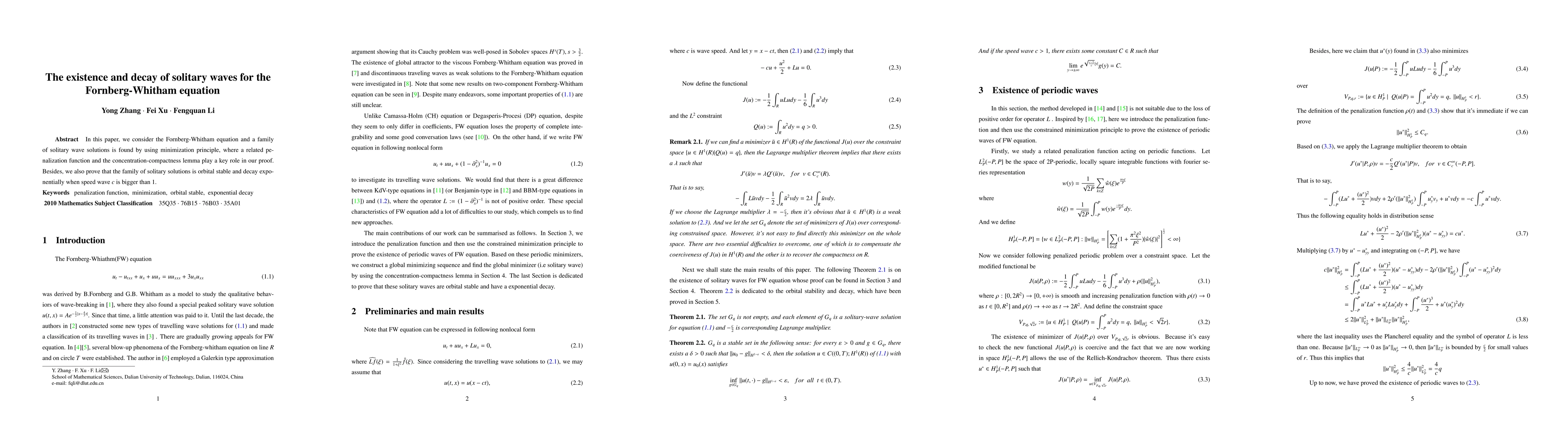 In this paper, we consider the Fornberg-Whitham equation and a family of solitary wave solutions is found by using minimization principle, where a related penalization function and the concentration-compactness lemma play a key role in our proof. Besides, we also prove that the family of solitary solutions is orbital stable and decay exponentially when speed wave c is bigger than 1.