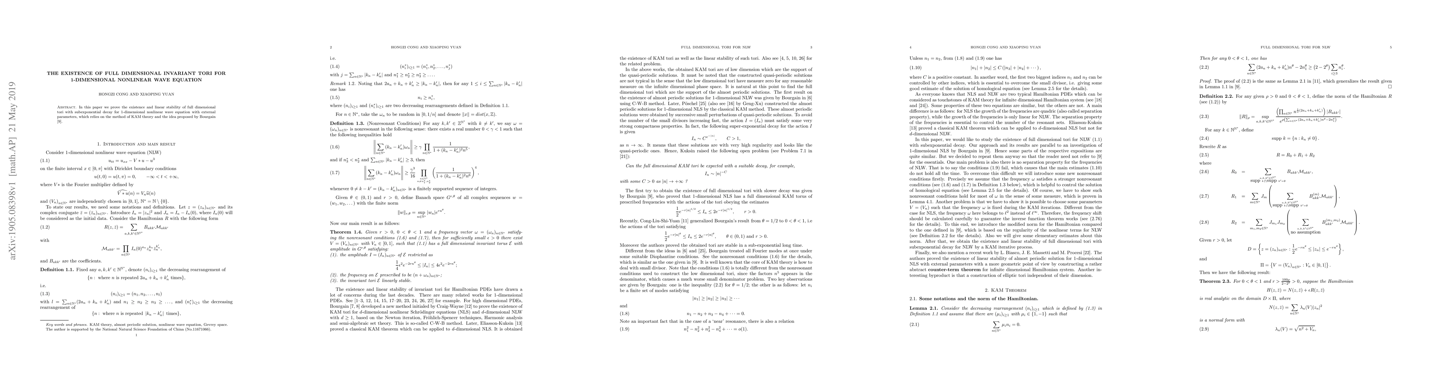 This paper proves the existence and linear stability of full dimensional invariant tori with subexponential decay for a 1-dimensional nonlinear wave equation, utilizing KAM theory and Bourgain's ideas to handle the external parameters.