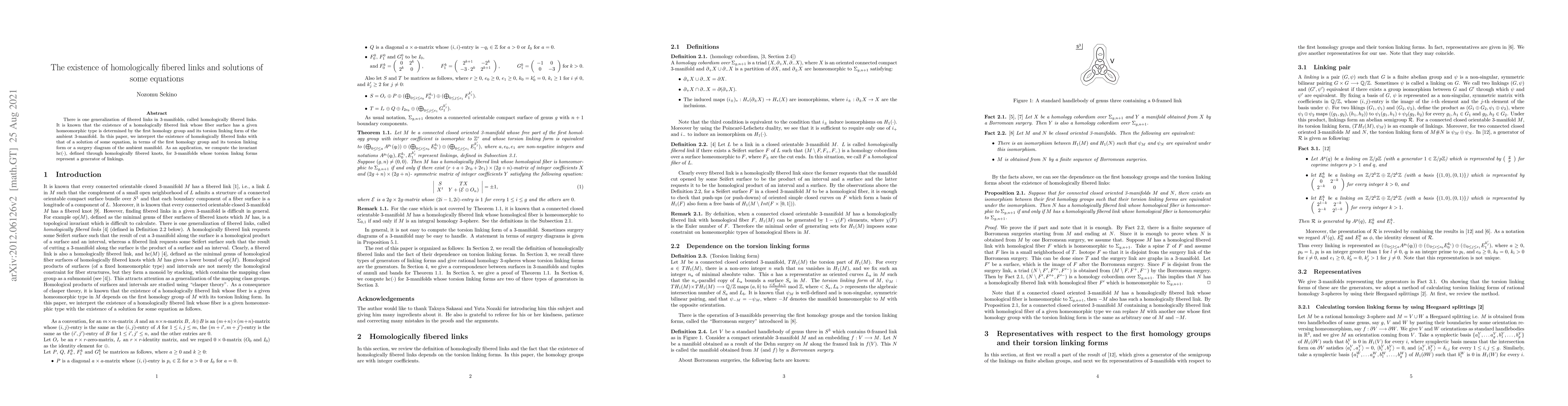 There is one generalization of fibered links in 3-manifolds, called homologically fibered links. It is known that the existence of homologically fibered links whose fiber surface has a given homeomorphic type is determined by the first homology group and its torsion linking form of the ambient 3-manifold. In this paper, we interpret the existence of homologically fibered links with that of a solution of some equation, in terms of the first homology group and its torsion linking form or a surgery diagram of the ambient manifold. As an application, we compute the ${\rm hc}(\cdot)$, defined through homologically fibered knots, for 3-manifolds whose torsion linkng forms represent a generator of linkings.