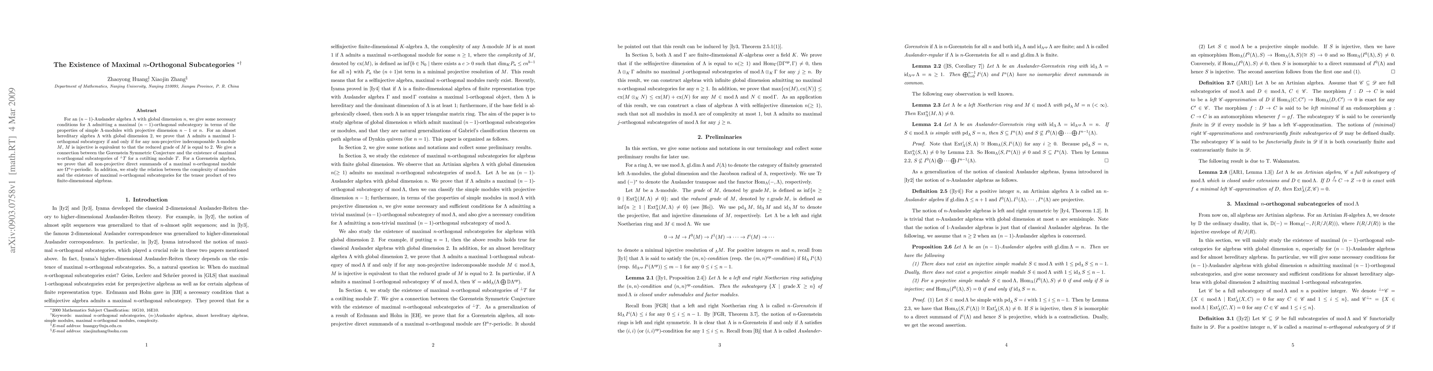 For an $(n-1)$-Auslander algebra $\Lambda$ with global dimension $n$, we give some necessary conditions for $\Lambda$ admitting a maximal $(n-1)$-orthogonal subcategory in terms of the properties of simple $\Lambda$-modules with projective dimension $n-1$ or $n$. For an almost hereditary algebra $\Lambda$ with global dimension 2, we prove that $\Lambda$ admits a maximal 1-orthogonal subcategory if and only if for any non-projective indecomposable $\Lambda$-module $M$, $M$ is injective is equivalent to that the reduced grade of $M$ is equal to 2. We give a connection between the Gorenstein Symmetric Conjecture and the existence of maximal $n$-orthogonal subcategories of $^{\bot}T$ for a cotilting module $T$. For a Gorenstein algebra, we prove that all non-projective direct summands of a maximal $n$-orthogonal module are $\Omega ^n\tau$-periodic. In addition, we study the relation between the complexity of modules and the existence of maximal $n$-orthogonal subcategories for the tensor product of two finite-dimensional algebras.