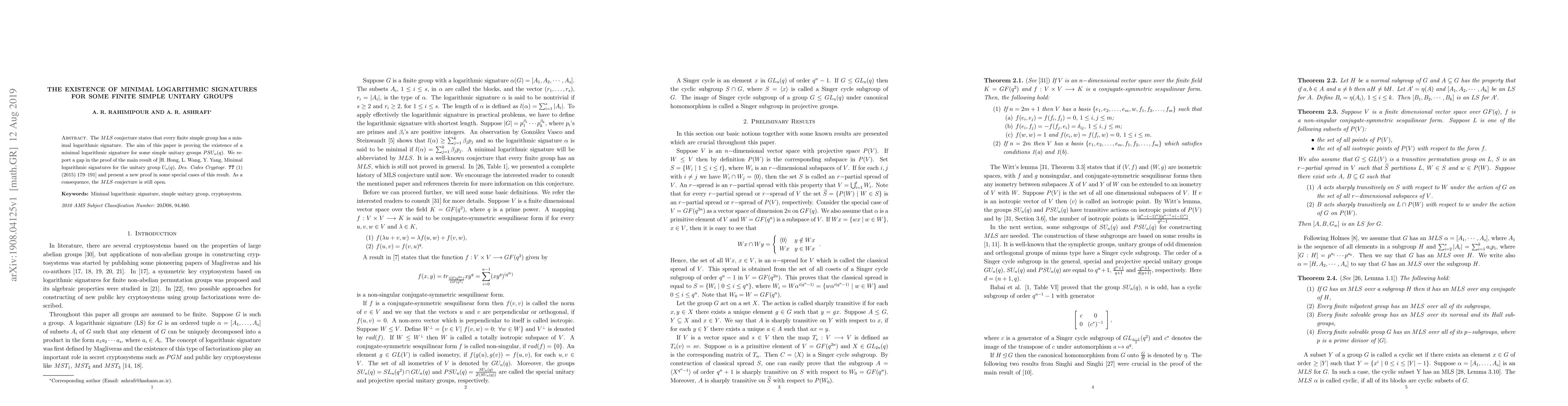 The $MLS$ conjecture states that every finite simple group has a minimal logarithmic signature. The aim of this paper is proving the existence of a minimal logarithmic signature for some simple unitary groups $PSU_{n}(q)$. We report a gap in the proof of the main result of [H. Hong, L. Wang, Y. Yang, Minimal logarithmic signatures for the unitary group $U_n(q)$, \textit{Des. Codes Cryptogr.} \textbf{77} (1) (2015) 179--191] and present a new proof in some special cases of this result. As a consequence, the $MLS$ conjecture is still open.