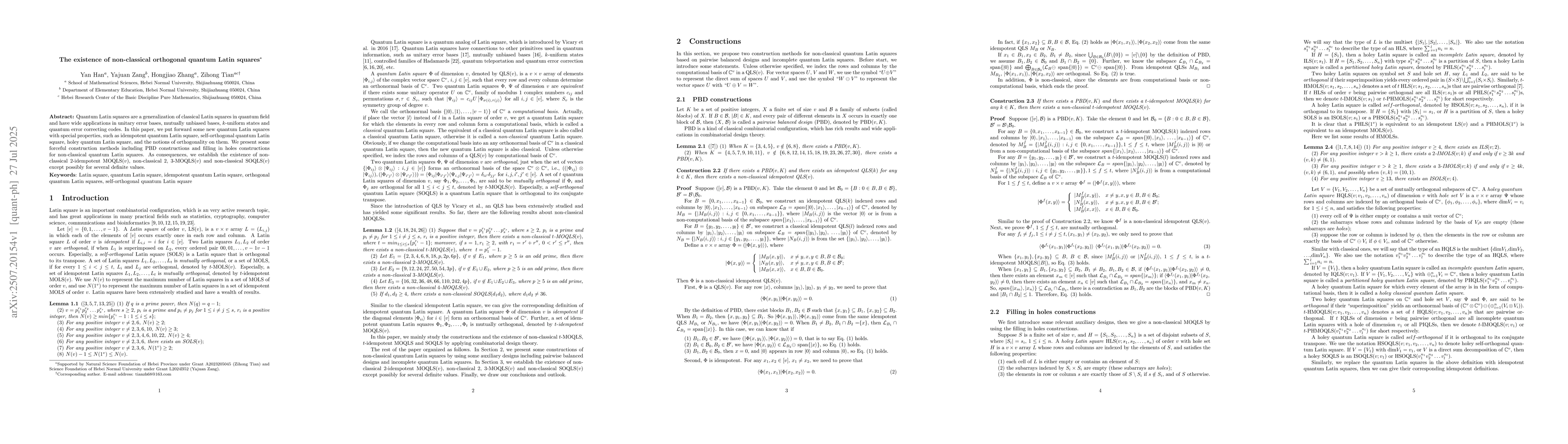 Quantum Latin squares are a generalization of classical Latin squares in quantum field and have wide applications in unitary error bases, mutually unbiased bases, $k$-uniform states and quantum error correcting codes. In this paper, we put forward some new quantum Latin squares with special properties, such as idempotent quantum Latin square, self-orthogonal quantum Latin square, holey quantum Latin square, and the notions of orthogonality on them. We present some forceful construction methods including PBD constructions and filling in holes constructions for non-classical quantum Latin squares. As consequences, we establish the existence of non-classical 2-idempotent MOQLS$(v)$, non-classical 2, 3-MOQLS$(v)$ and non-classical SOQLS$(v)$ except possibly for several definite values.