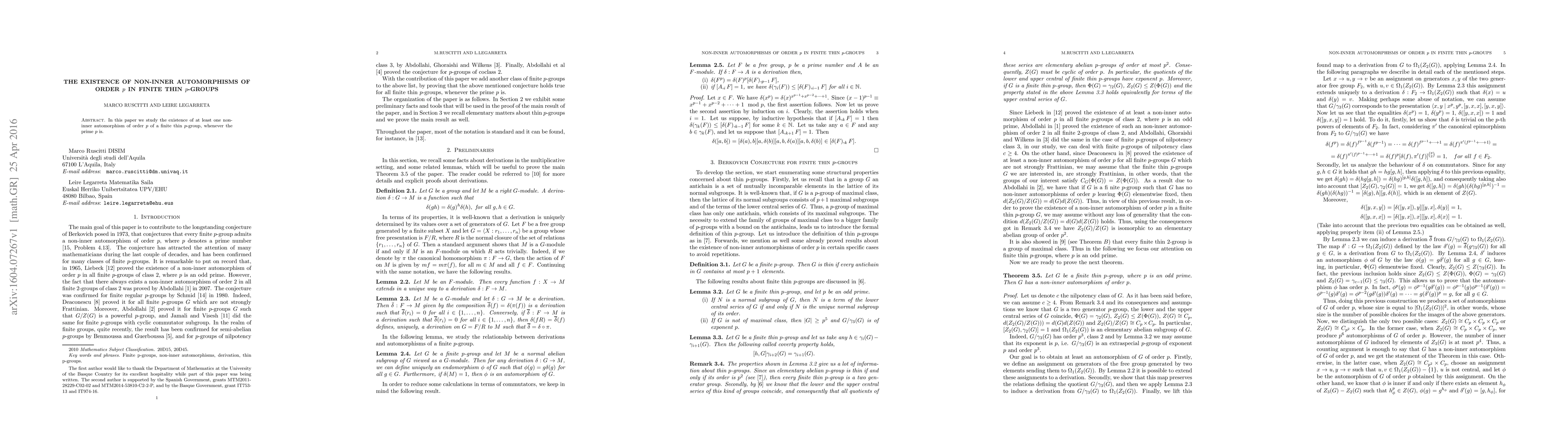 In this paper we study the existence of at least one non-inner automorphism of order p of a finite thin p-group, for any prime p.