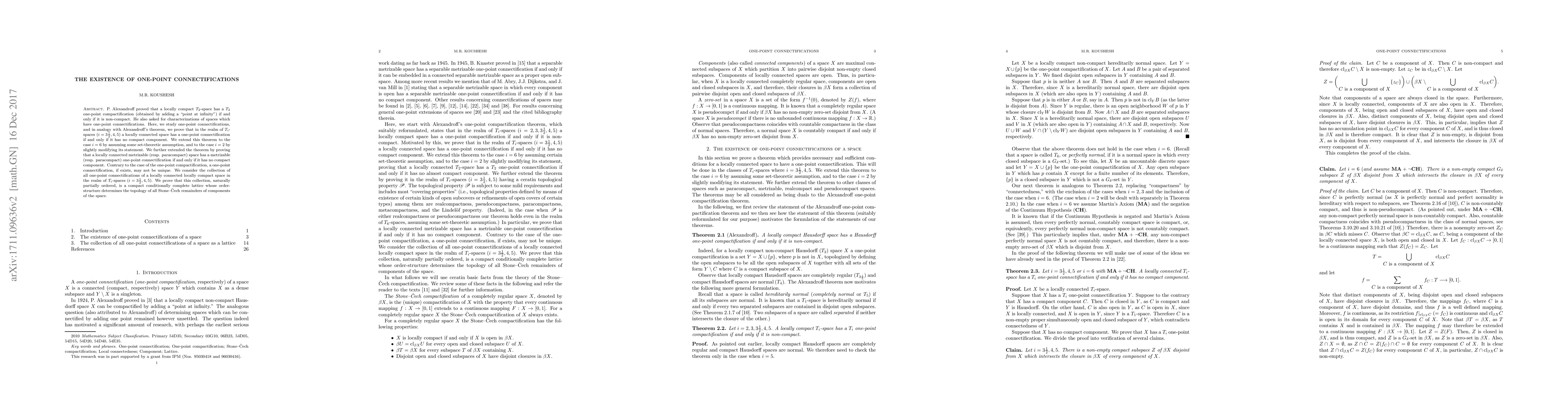 This paper extends Alexandroff's theorem on one-point compactifications to various $T_i$-spaces, proving that a locally connected space has a one-point connectification if and only if it lacks compact components. It also discusses the non-uniqueness of one-point connectifications and the structure of their collection as a compact conditionally complete lattice, determining the topology of all Stone-Cech remainders.