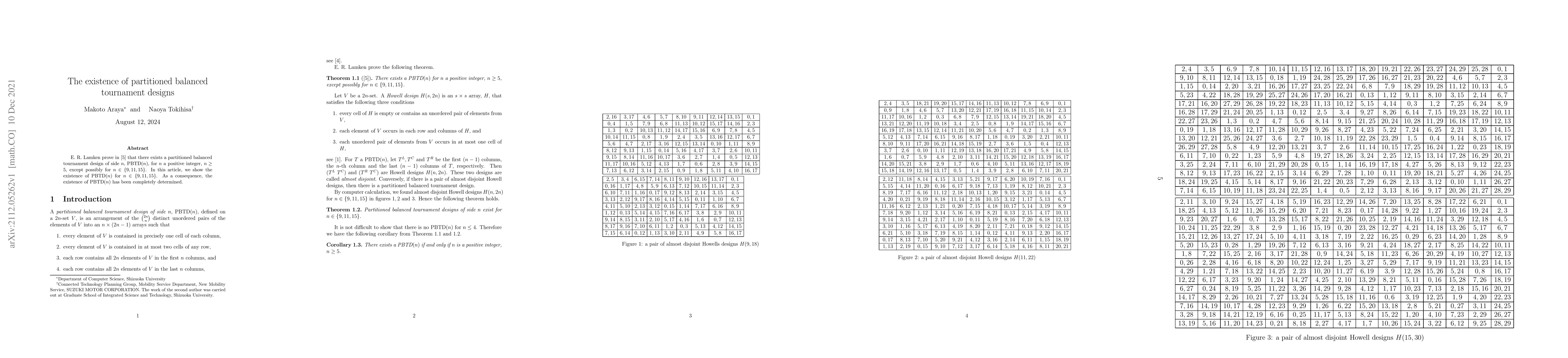 Researchers prove the existence of partitioned balanced tournament designs for n = 9, 11, and 15, completing the determination of PBTD(n) for all positive integers n >= 5.