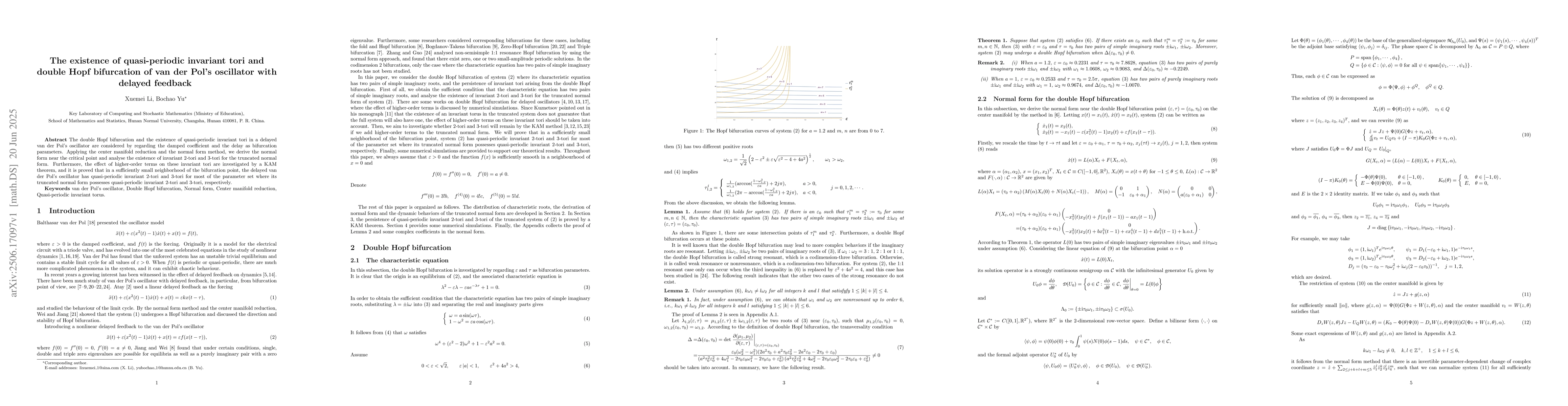 The double Hopf bifurcation and the existence of quasi-periodic invariant tori in a delayed van der Pol's oscillator are considered by regarding the damped coefficient and the delay as bifurcation parameters. Applying the center manifold reduction and the normal form method, we derive the normal form near the critical point and analyse the existence of invariant 2-tori and 3-tori for the truncated normal form. Furthermore, the effect of higher-order terms on these invariant tori are investigated by a KAM theorem, and it is proved that in a sufficiently small neighborhood of the bifurcation point, the delayed van der Pol's oscillator has quasi-periodic invariant 2-tori and 3-tori for most of the parameter set where its truncated normal form possesses quasi-periodic invariant 2-tori and 3-tori, respectively.