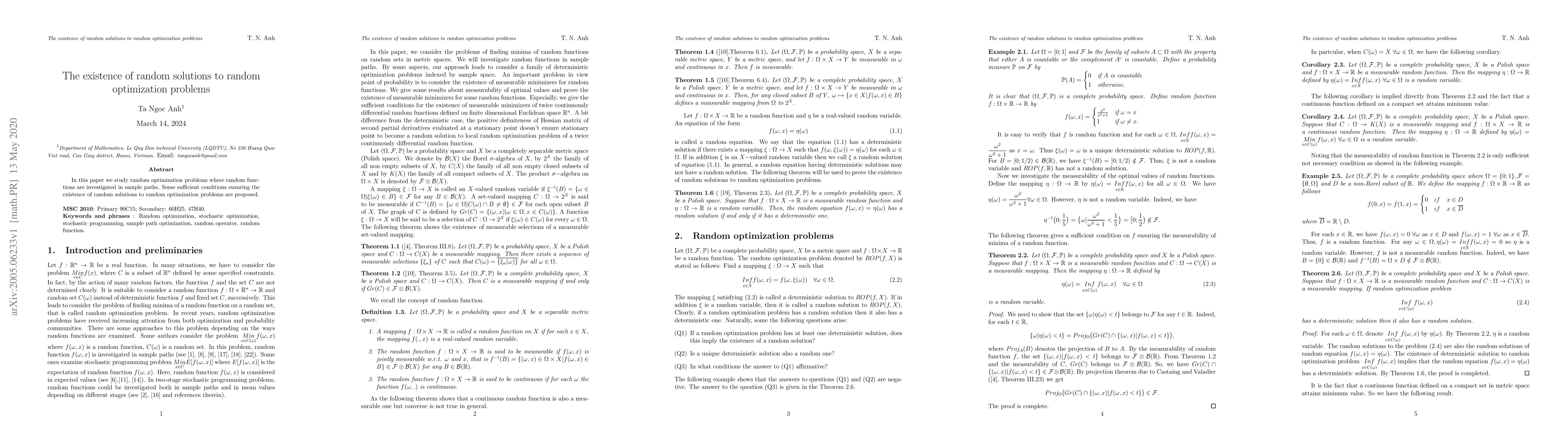 Researchers investigate how random functions can have solutions when optimized, proposing conditions for their existence. They aim to provide a framework for solving complex optimization problems with uncertain inputs.