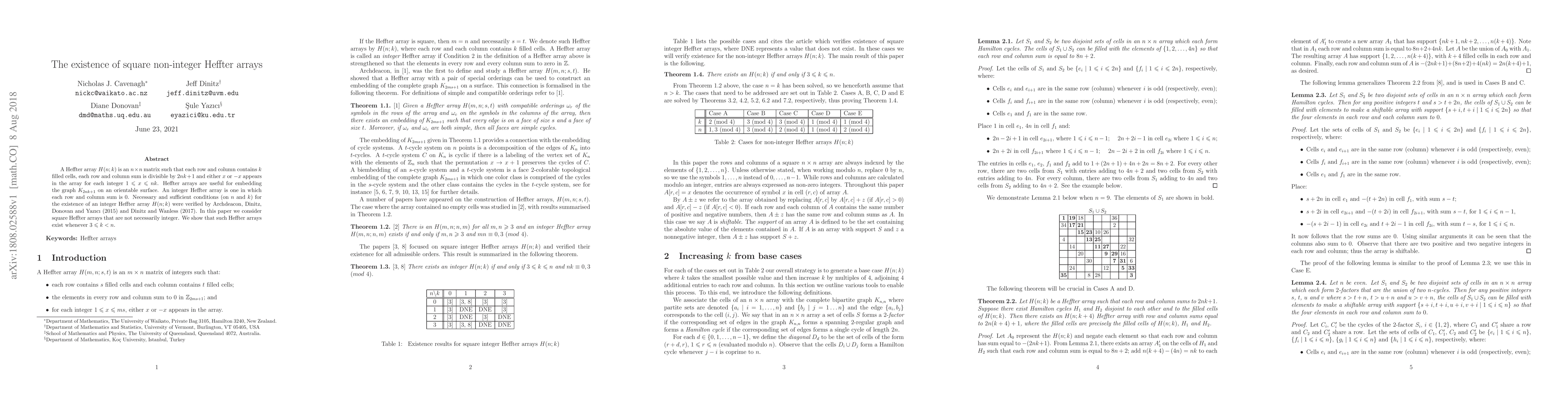 existence of an integer Heffter array $H(n;k)$ were verified by Archdeacon,