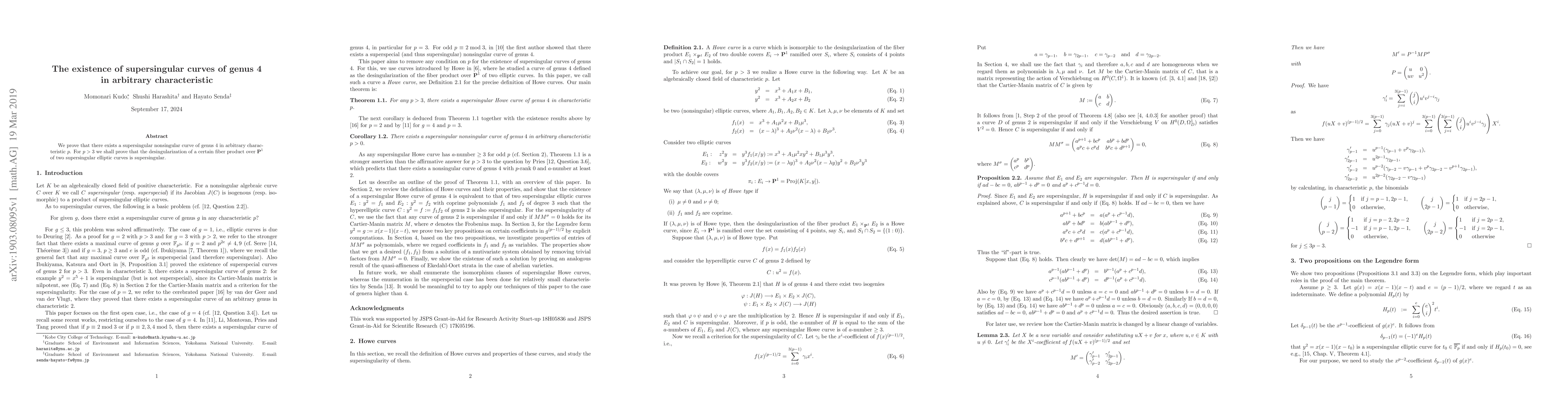 Summary: This paper establishes the existence of supersingular nonsingular curves of genus 4 in any characteristic, and demonstrates that the desingularization of a specific fiber product of supersingular elliptic curves over $\mathbb{P}^1$ is also supersingular when the characteristic is greater than 3.