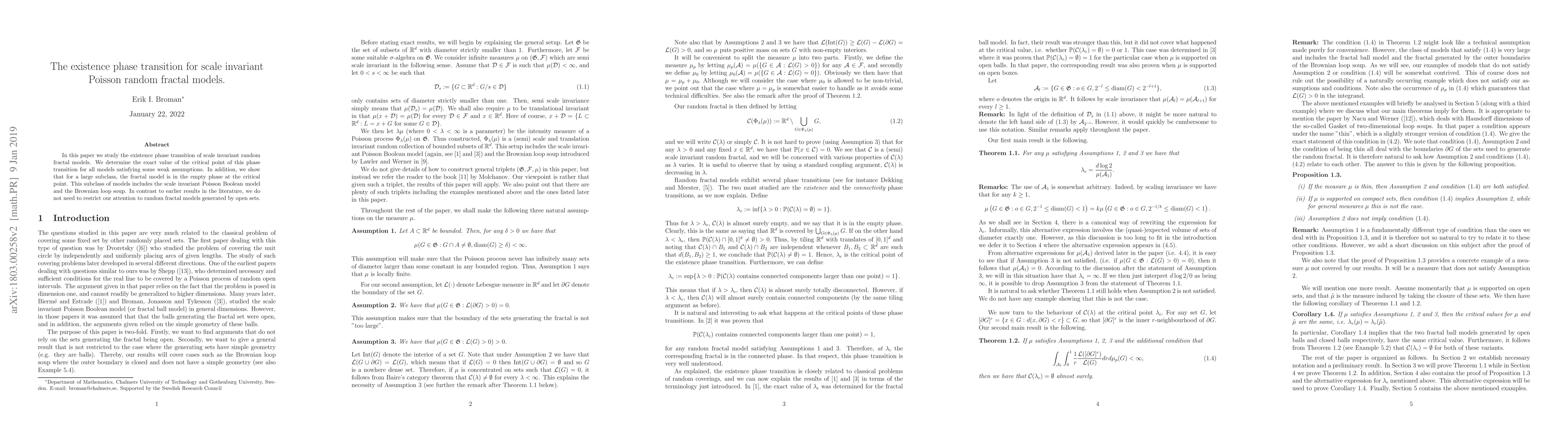 This paper investigates the existence phase transition in scale invariant random fractal models, determining the exact critical point for models meeting certain assumptions. It reveals that a significant subclass, including the scale invariant Poisson Boolean model and the Brownian loop soup, resides in the empty phase at the critical point, without the need for restricting to models generated by open sets.