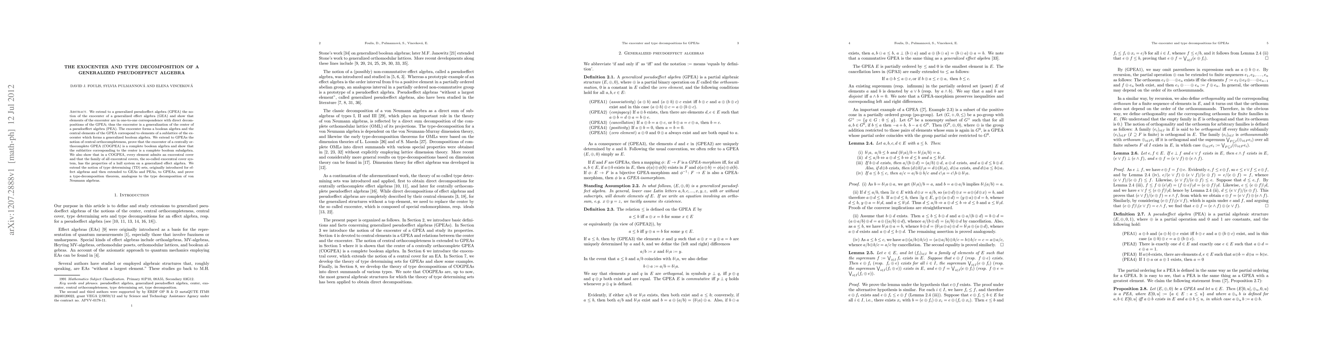 We extend to a generalized pseudoeffect algebra (GPEA) the notion of the exocenter of a generalized effect algebra (GEA) and show that elements of the exocenter are in one-to-one correspondence with direct decompositions of the GPEA; thus the exocenter is a generalization of the center of a pseudoeffect algebra (PEA). The exocenter forms a boolean algebra and the central elements of the GPEA correspond to elements of a sublattice of the exocenter which forms a generalized boolean algebra. We extend to GPEAs the notion of central orthocompleteness, prove that the exocenter of a centrally orthocomplete GPEA (COGPEA) is a complete boolean algebra and show that the sublattice corresponding to the center is a complete boolean subalgebra. We also show that in a COGPEA, every element admits an exocentral cover and that the family of all exocentral covers, the so-called exocentral cover system, has the properties of a hull system on a generalized effect algebra. We extend the notion of type determining (TD) sets, originally introduced for effect algebras and then extended to GEAs and PEAs, to GPEAs, and prove a type-decomposition theorem, analogous to the type decomposition of von Neumann algebras.