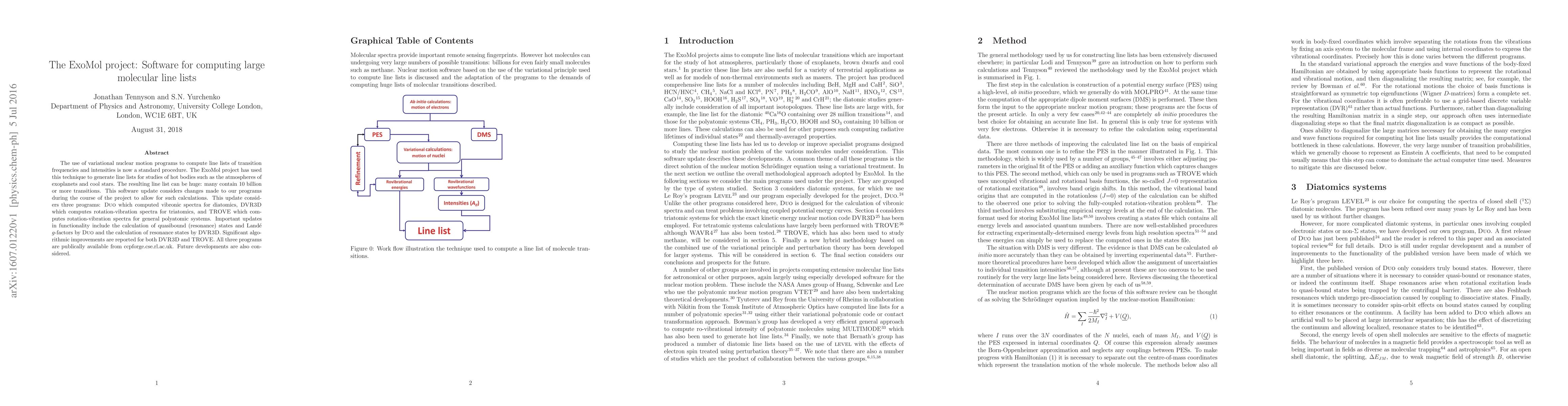 The ExoMol project has developed advanced software for generating extensive molecular line lists, crucial for studying exoplanet atmospheres and cool stars. Updates include improved algorithms and new functionalities for calculating vibronic spectra, resonance states, and Landé g-factors in diatomic, triatomic, and polyatomic systems.
