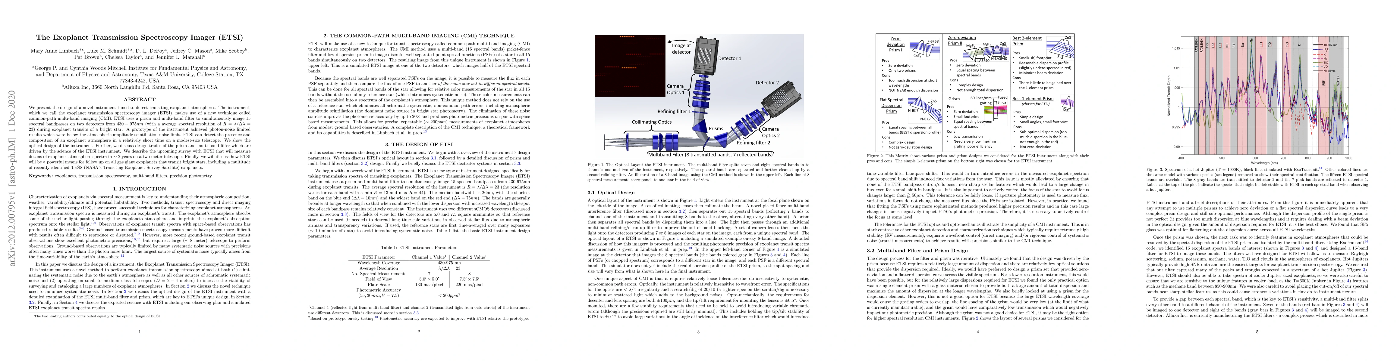 The Exoplanet Transmission Spectroscopy Imager (ETSI) is a novel instrument designed to detect and analyze the atmospheres of transiting exoplanets using common-path multi-band imaging. ETSI's prototype achieved photon-noise limited results, enabling the detection of exoplanet atmospheres on a modest-size telescope within a short time frame.