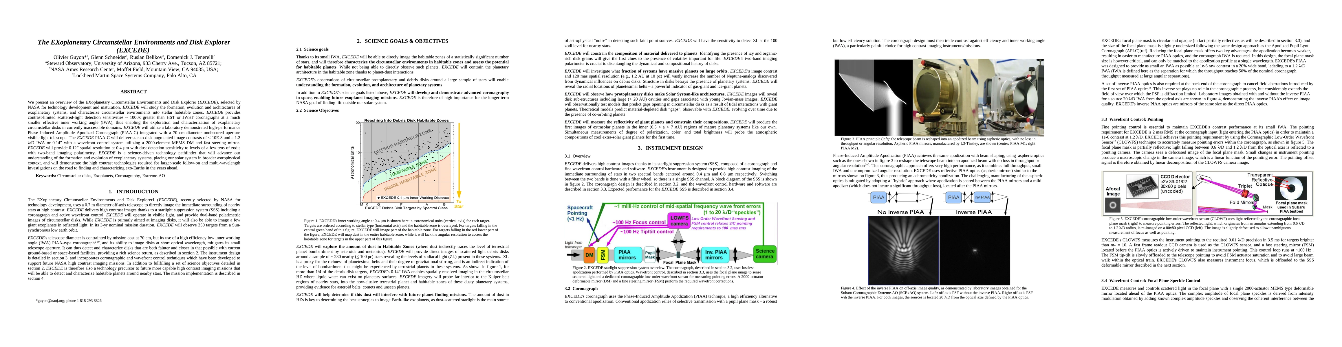 EXCEDE, selected by NASA, aims to study exoplanetary systems and their circumstellar environments, utilizing a high-performance Phase Induced Amplitude Apodized Coronagraph for unprecedented contrast and resolution to explore previously inaccessible exoplanetary disks. It seeks to advance our understanding of planetary formation and evolution, and pave the way for future missions to find and characterize Earth-like exoplanets.