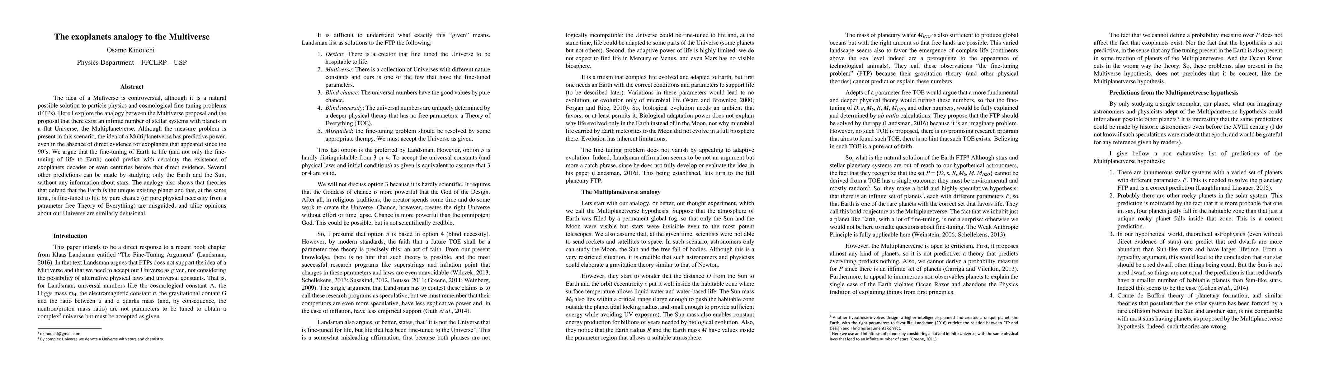 This paper explores the analogy between the Multiverse and the Multiplanetverse, proposing an infinite number of stellar systems with planets in a flat Universe. It argues that the fine-tuning of Earth to life could predict the existence of exoplanets long before direct evidence, highlighting the predictive power of the Multiplanetverse and refuting the notion that Earth is uniquely fine-tuned.