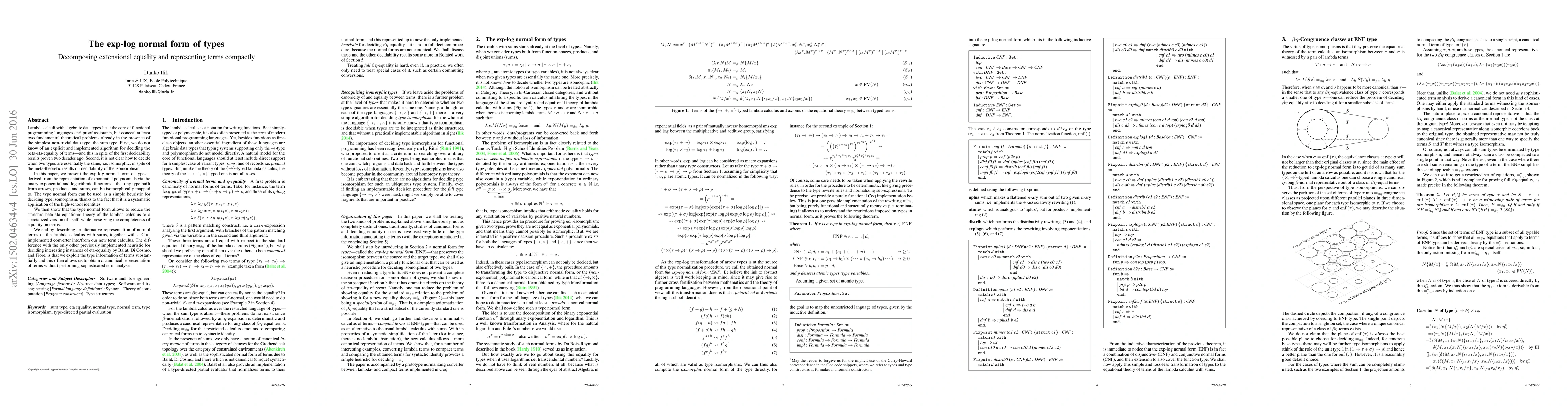 Lambda calculi with algebraic data types lie at the core of functional programming languages and proof assistants, but conceal at least two fundamental theoretical problems already in the presence of the simplest non-trivial data type, the sum type. First, we do not know of an explicit and implemented algorithm for deciding the beta-eta-equality of terms---and this in spite of the first decidability results proven two decades ago. Second, it is not clear how to decide when two types are essentially the same, i.e. isomorphic, in spite of the meta-theoretic results on decidability of the isomorphism. In this paper, we present the exp-log normal form of types---derived from the representation of exponential polynomials via the unary exponential and logarithmic functions---that any type built from arrows, products, and sums, can be isomorphically mapped to. The type normal form can be used as a simple heuristic for deciding type isomorphism, thanks to the fact that it is a systematic application of the high-school identities. We then show that the type normal form allows to reduce the standard beta-eta equational theory of the lambda calculus to a specialized version of itself, while preserving the completeness of equality on terms. We end by describing an alternative representation of normal terms of the lambda calculus with sums, together with a Coq-implemented converter into/from our new term calculus. The difference with the only other previously implemented heuristic for deciding interesting instances of eta-equality by Balat, Di Cosmo, and Fiore, is that we exploit the type information of terms substantially and this often allows us to obtain a canonical representation of terms without performing sophisticated term analyses.