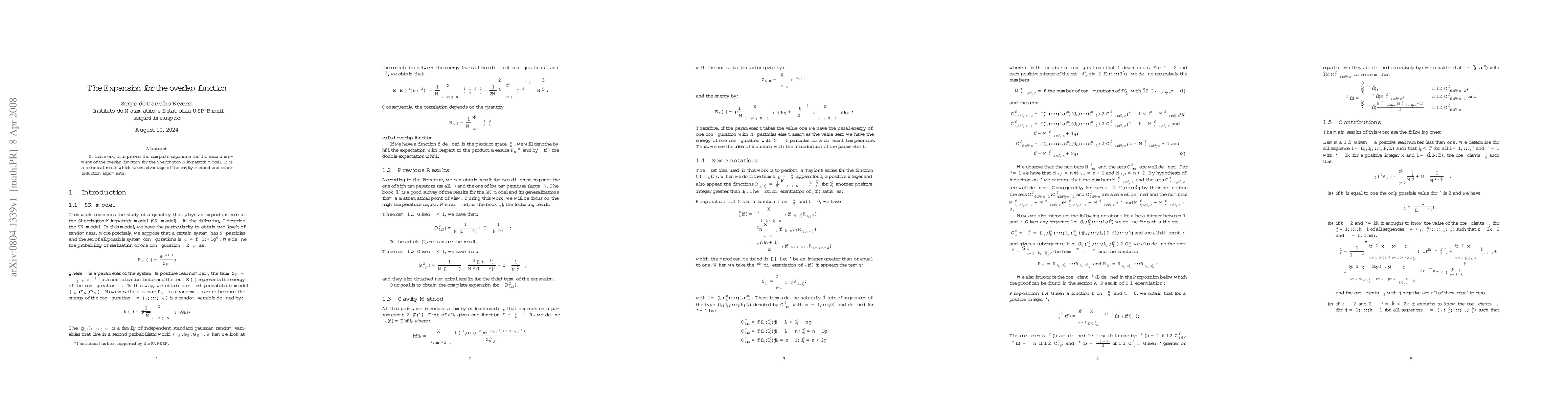 In this work, it is proved the complete expansion for the second moment of the overlap function for the Sherrington-Kirkpatrick model. It is a technical result which takes advantage of the cavity method and other induction arguments.