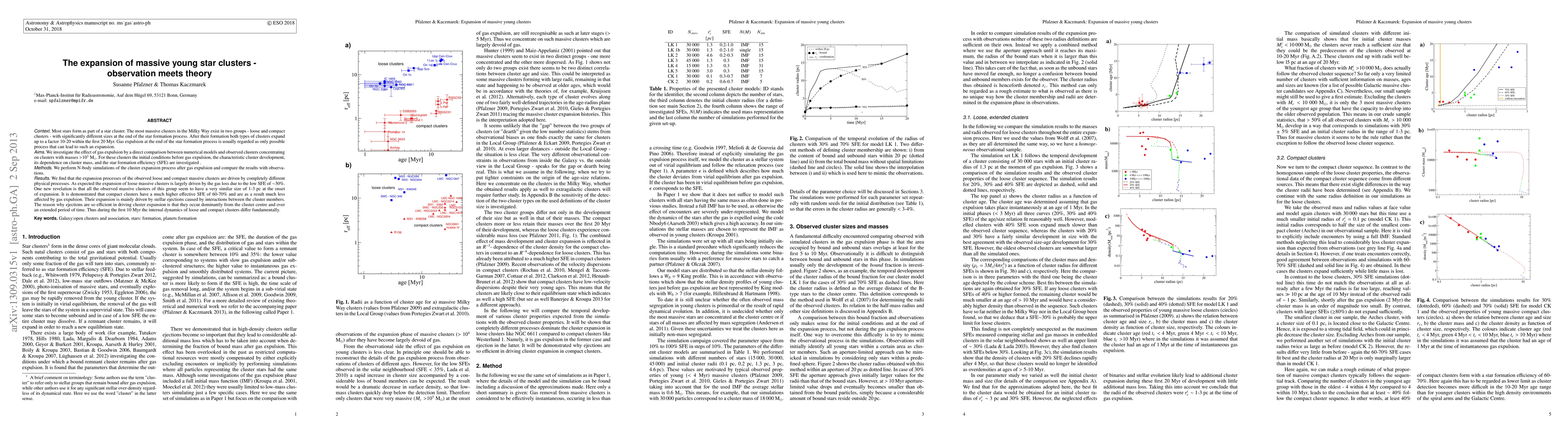 Most stars form as part of a star cluster. The most massive clusters in the Milky Way exist in two groups - loose and compact clusters - with significantly different sizes at the end of the star formation process. After their formation both types of clusters expand up to a factor 10-20 within the first 20 Myr. Gas expulsion at the end of the star formation process is usually regarded as only possible process that can lead to such an expansion.We investigate the effect of gas expulsion by a direct comparison between numerical models and observed clusters concentrating on clusters with masses >10^3 M(sun). For these clusters the initial conditions before gas expulsion, the characteristic cluster development, its dependence on cluster mass, and the star formation efficiency (SFE) are investigated. We perform N-body simulations of the cluster expansion process after gas expulsion and compare the results with observations. We find that the expansion processes of the observed loose and compact massive clusters are driven by completely different physical processes. As expected the expansion of loose massive clusters is largely driven by the gas loss due to the low SFE of ~30%. One new revelation is that all the observed massive clusters of this group seem to have a very similar size of 1-3 pc at the onset of expansion. It is demonstrated that compact clusters have a much higher effective SFE of 60-70% and are as a result much less affected by gas expulsion. Their expansion is mainly driven by stellar ejections caused by interactions between the cluster members. The reason why ejections are so efficient in driving cluster expansion is that they occur dominantly from the cluster centre and over an extended period of time. Thus during the first 10 Myr the internal dynamics of loose and compact clusters differ fundamentally.