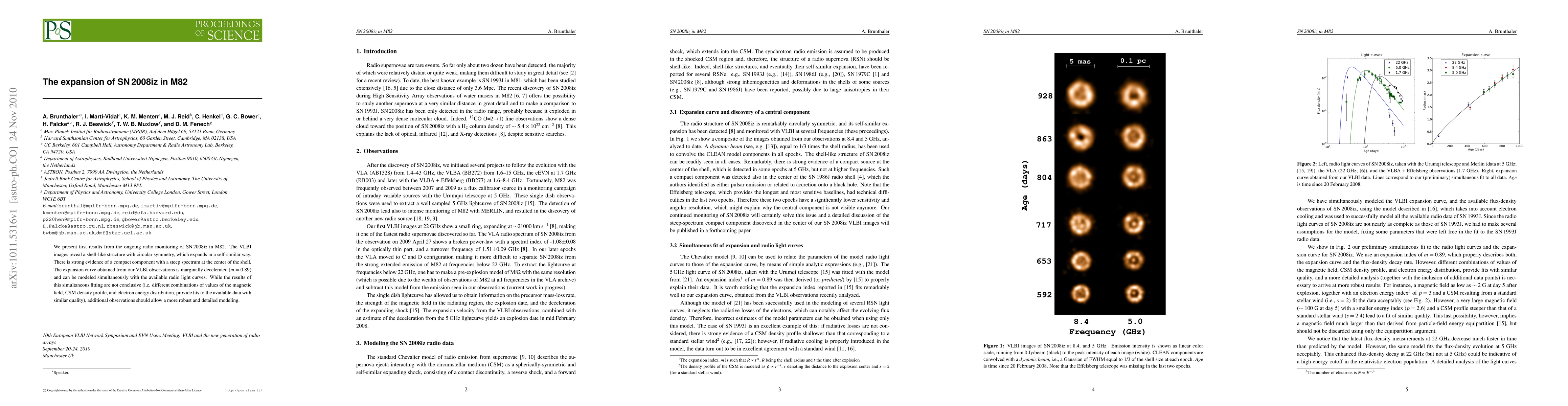 We present first results from the ongoing radio monitoring of SN 2008iz in M82. The VLBI images reveal a shell-like structure with circular symmetry, which expands in a self-similar way. There is strong evidence of a compact component with a steep spectrum at the center of the shell. The expansion curve obtained from our VLBI observations is marginally decelerated (m = 0.89) and can be modeled simultaneously with the available radio light curves. While the results of this simultaneous fitting are not conclusive (i.e. different combinations of values of the magnetic field, CSM density profile, and electron energy distribution, provide fits to the available data with similar quality), additional observations should allow a more robust and detailed modeling.