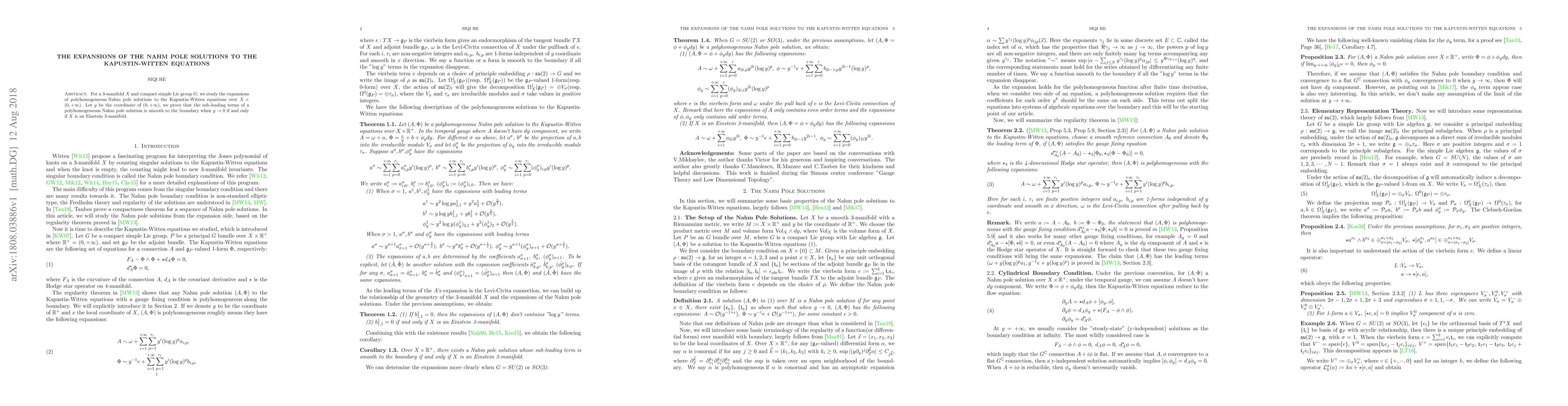 This paper investigates the expansions of polyhomogeneous Nahm pole solutions to the Kapustin-Witten equations over a 3-manifold $X$ extended with time, proving that sub-leading terms are smooth at the boundary as time approaches zero if and only if $X$ is an Einstein 3-manifold.