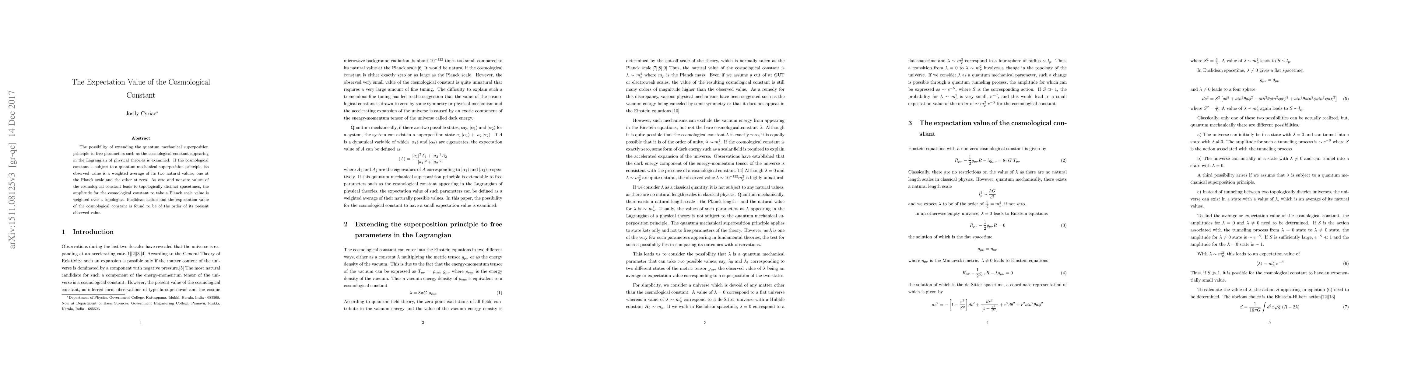 This paper explores the quantum superposition of the cosmological constant, suggesting its observed value is a weighted average of its Planck scale and zero values, leading to an expectation value consistent with current observations. The analysis incorporates topological distinctions between spacetimes with different constant values.